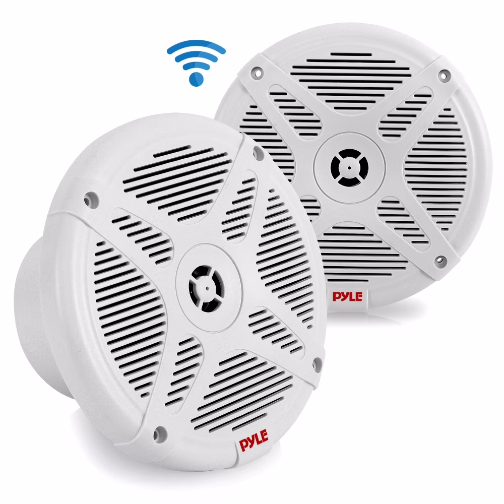 Pyle PLMRF65MW 6.5" 600 Watt Max Power 2-Way Waterproof Bluetooth Marine Speakers (Pair, White)