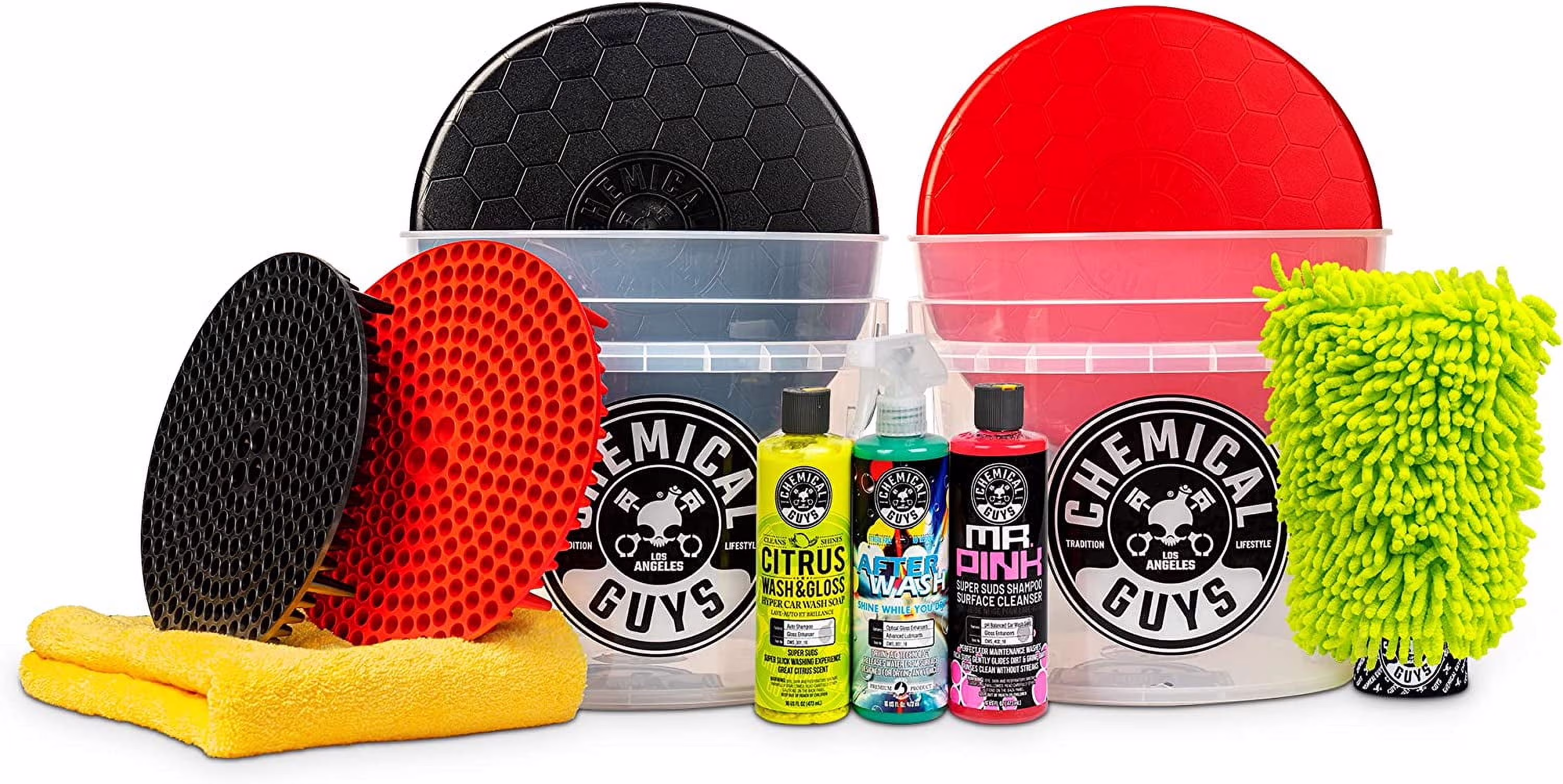 Chemical Guys HOL129 Best Two Car Wash Bucket Kit to Wash & Dry (11 Items Including 3 16 oz. Chemicals)
