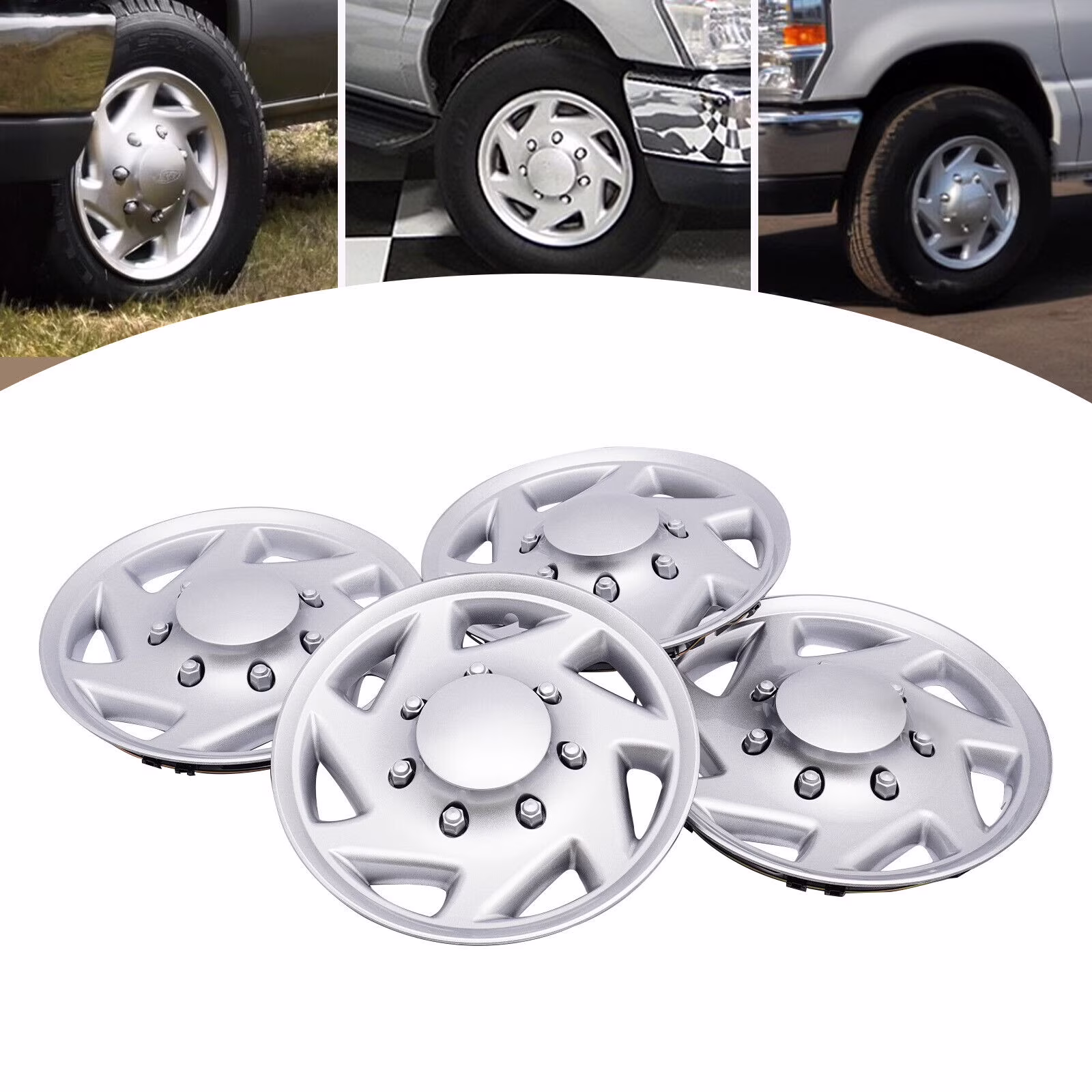 4-Pack Hub Caps for 99-18 Ford Econoline E250 E350 E450 8-Lug 16" Steel Wheels, ABS Material, Silver+Black, Direct Replacement