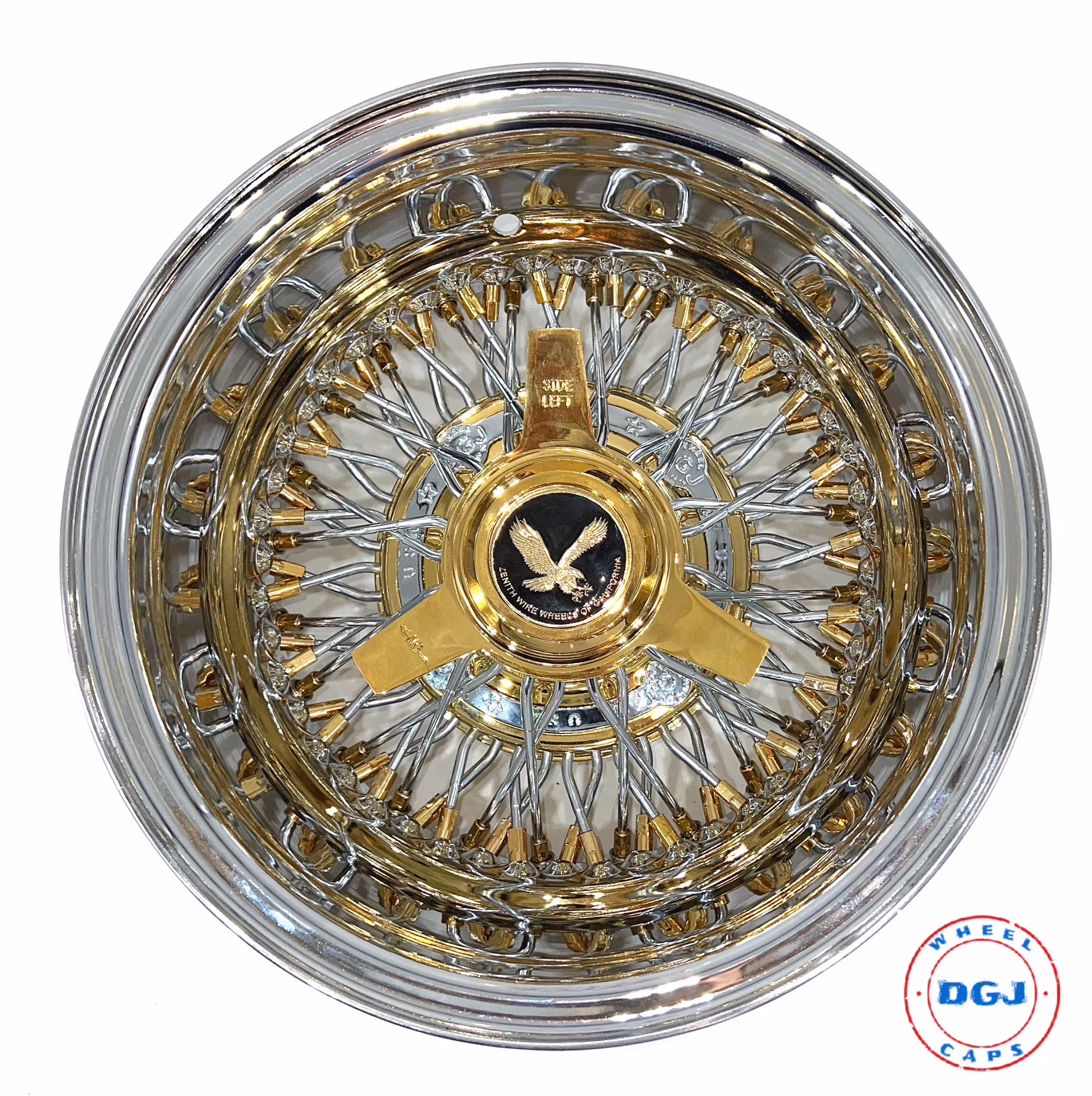 DGJ Wheel Rev 72 Cross Lace Gold 13x7 Nipples & Hub Lowrider Wire Wheels