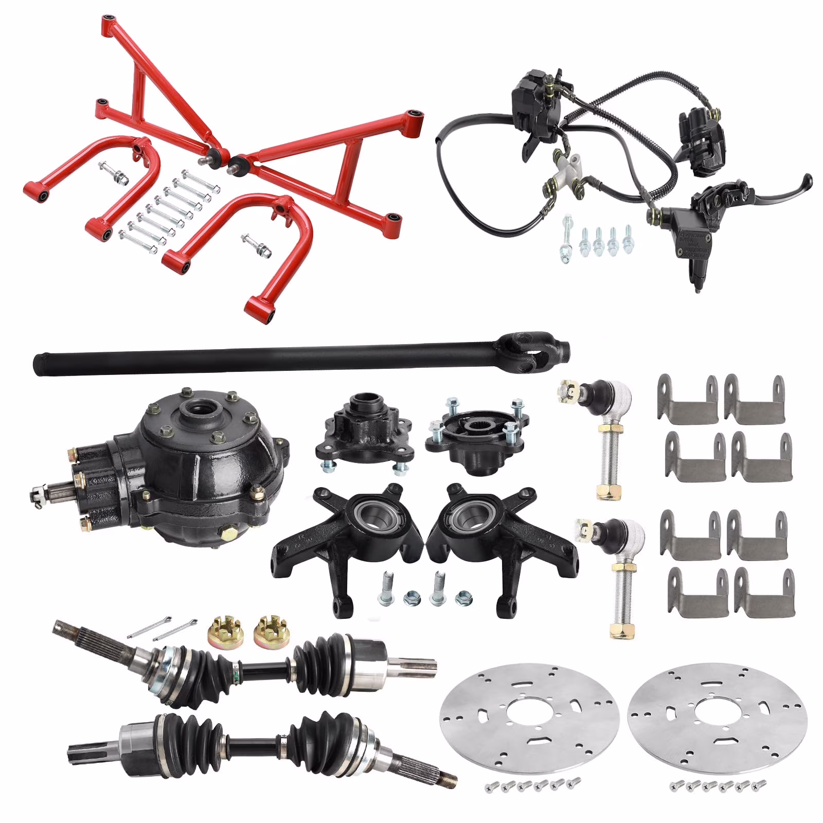 CV Axle Shaft Assembly & Drive Shaft Differential & Front Suspension Shock Swing Arm Swingarm Kit& Steering Spindle Wheel Hubs & Brake for 4WD Front Drive ATV UTV Quad Go Kart Golf Cart