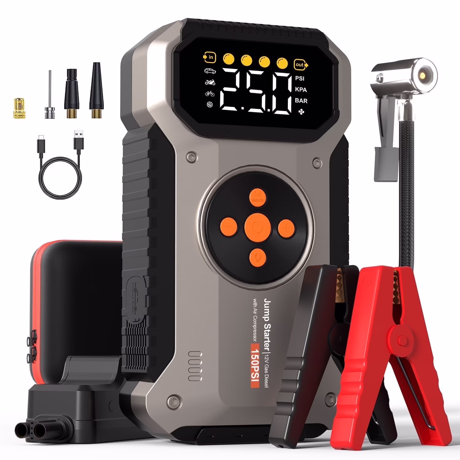 Featou 5000A Car Battery Jump Starter with 150 PSI Air Compressor, 12V Jump Box with Jumper Cables(8.5L Gas/ 7.0L Diesel), LCD Display