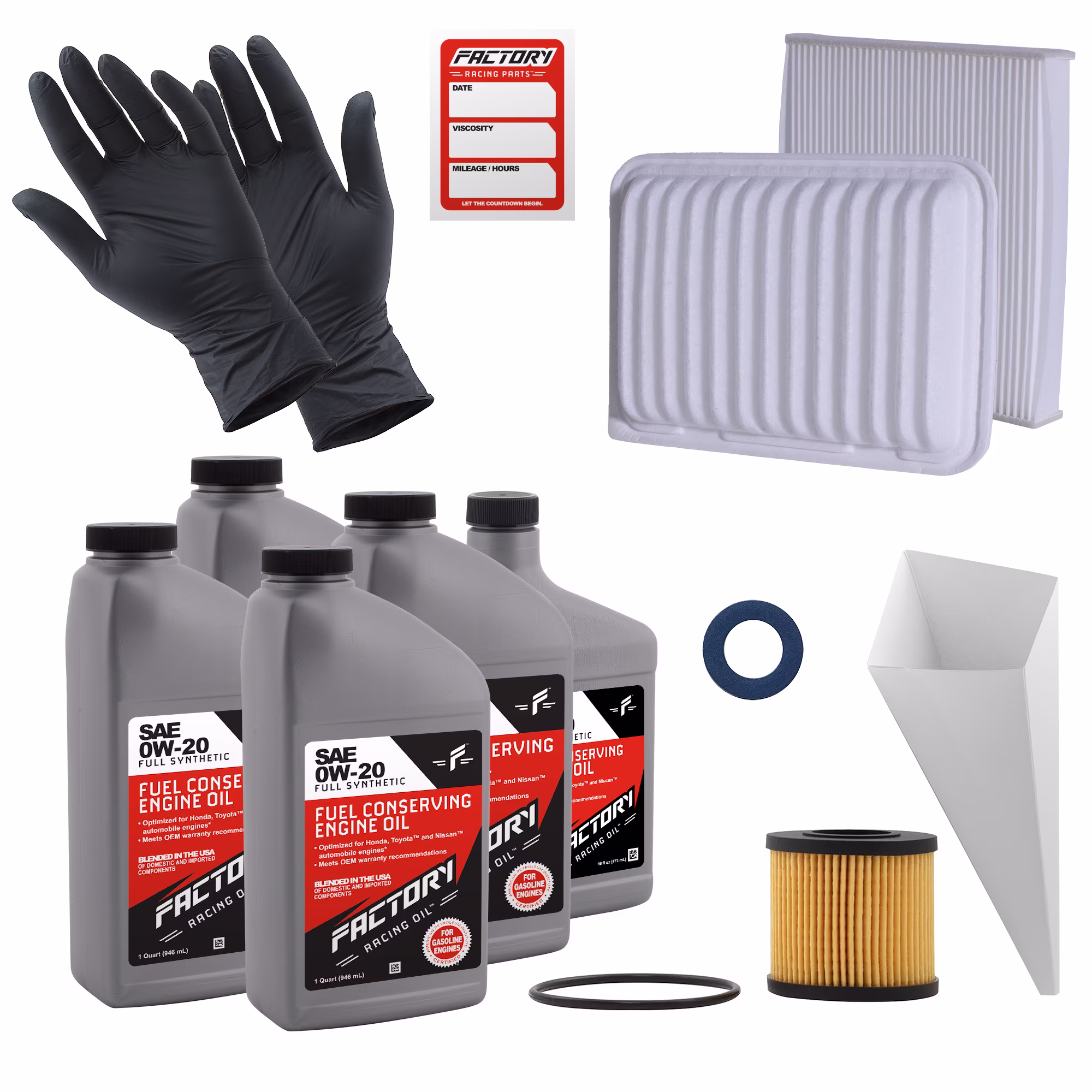 Factory Racing Parts Deluxe Oil Change Kit Compatible with Toyota Matrix 1.8L 2009-2014, Corolla 1.8L 2009-2016 0W-20 Full Synthetic - 4.5 Quarts