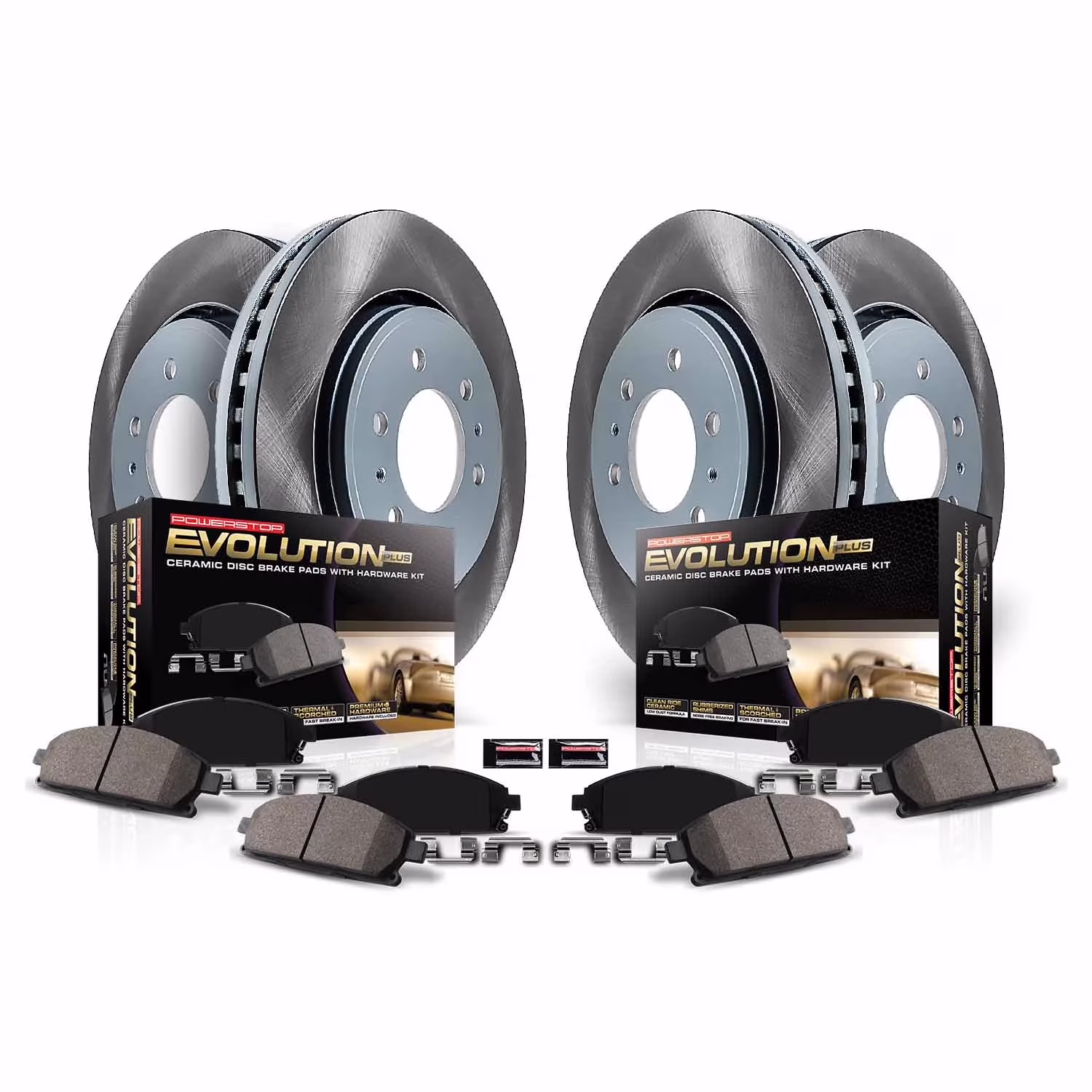 PowerStop Front and Rear Semi-Coated Rotor and Low-Dust Ceramic Brake Pad Kit SC7522