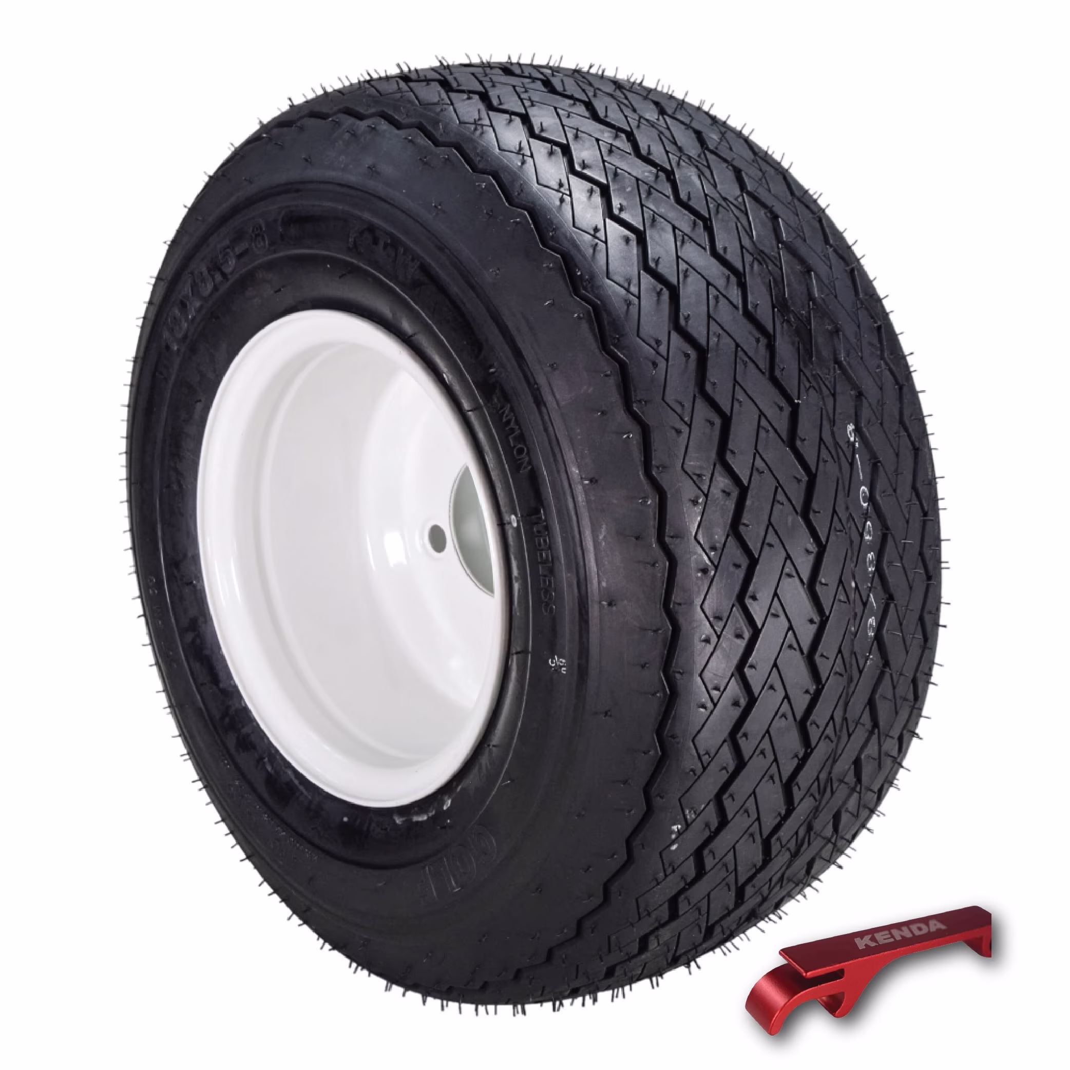 Kenda Hole-N-1 K389 18x8.5-8 Golf Cart Tire & White Wheel with Keychain - Single