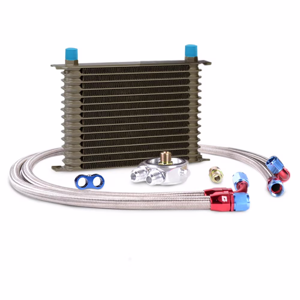 G-Plus Universal 15 Row AN10-10AN Aluminum Engine Transmission Oil Cooler Kit + Oil Hose End Kit