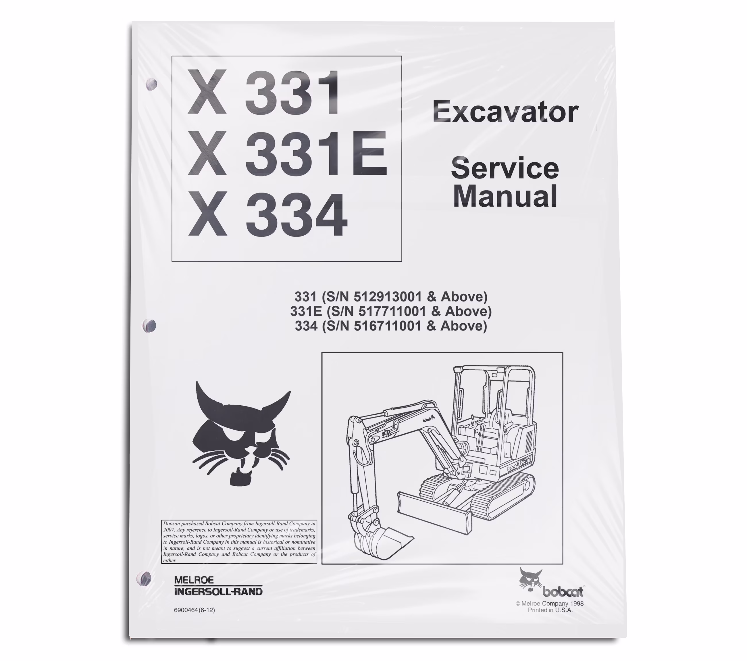 Bobcat 331, 331E, 334 Compact Excavator Workshop Repair Service Manual - Part Number # 6900464