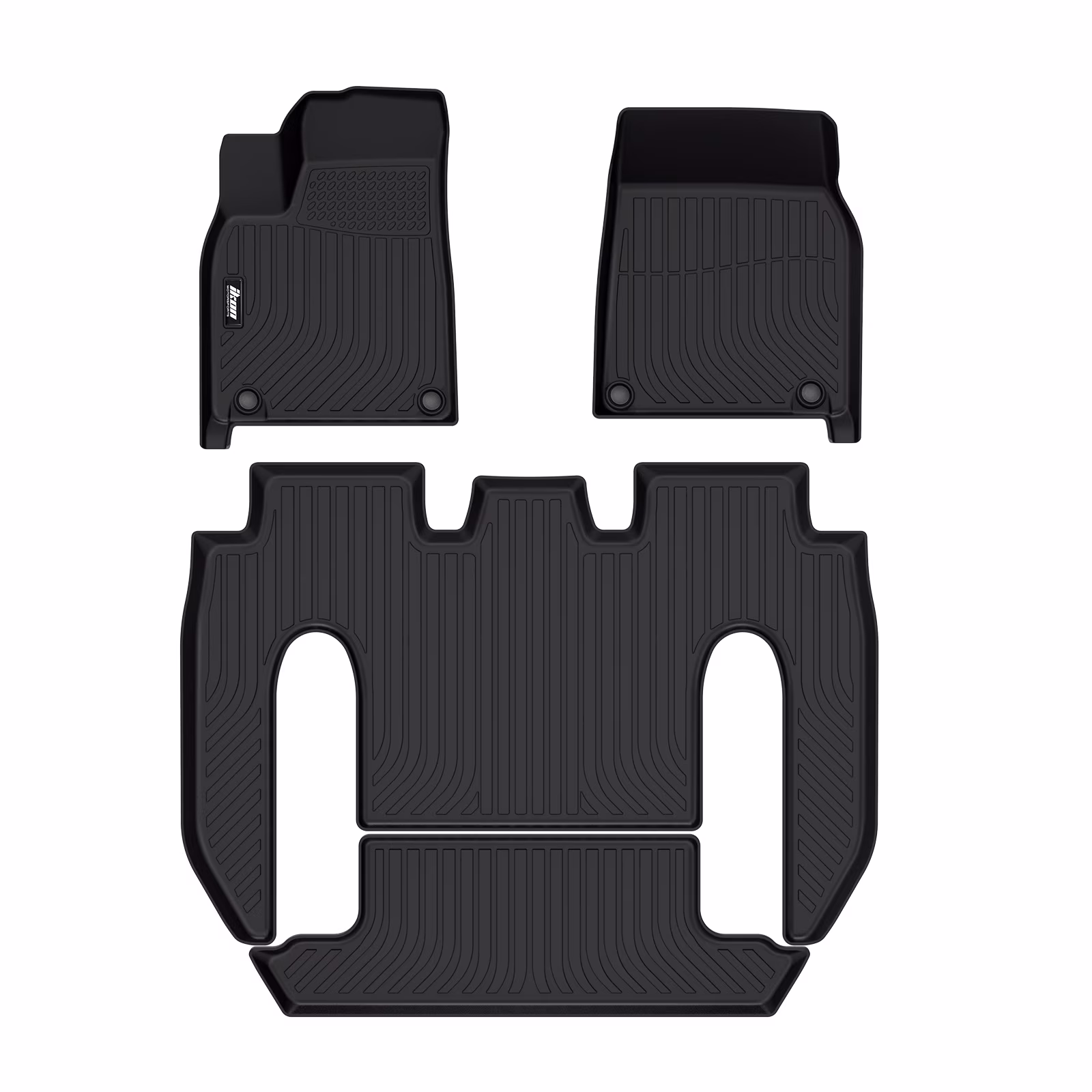 Ikon Motorsports Floor Mats Compatible With 2022-2025 Tesla Model X 6 Seats, 3D Molded Custom Carpets 1st 2nd Row Front Rear Protection 4PC Pad Black TPE Thermo Plastic Elastomer All Weather Liner
