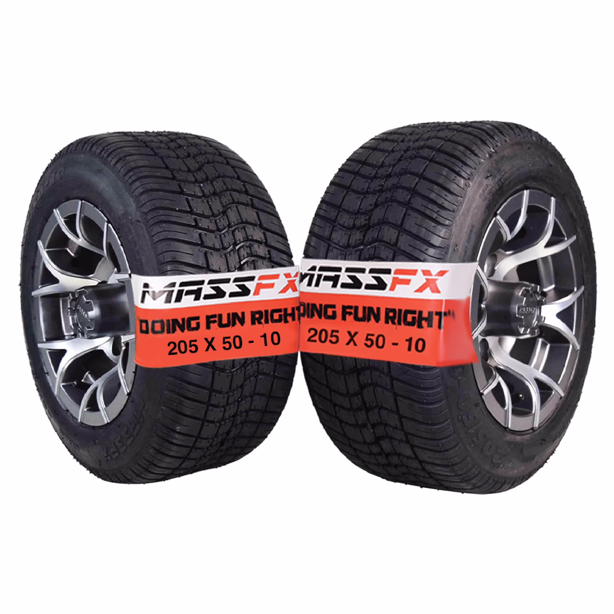 MASSFX SL 205/50-10 F/R Golf Cart Tire, PIT VIPER Grey Wheels 10x7 4/101.6 2pk