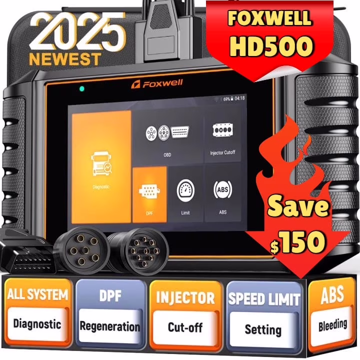 FOXWELL Heavy Duty Truck Scanner with DPF Regen, Full System Diesel Diagnostic Scan Tool for Cummins, Detroit, Caterpillar, Paccar, Hino & More Pickup Semi Trucks