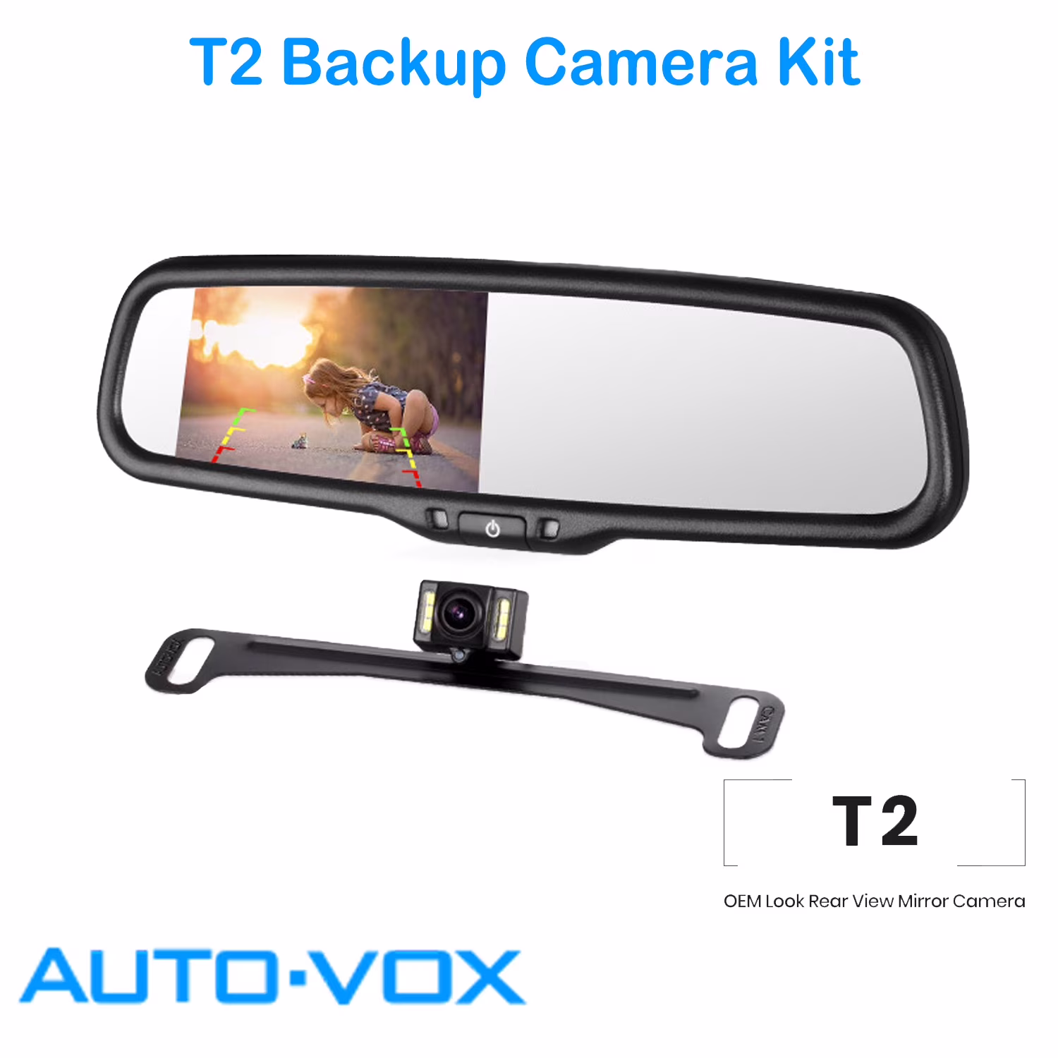 AUTO-VOX T2 Backup Camera for Car/Trucks, OEM Look Rear View Mirror Camera Monitor with IP68 Waterproof Back Up Camera for Parking & Reversing