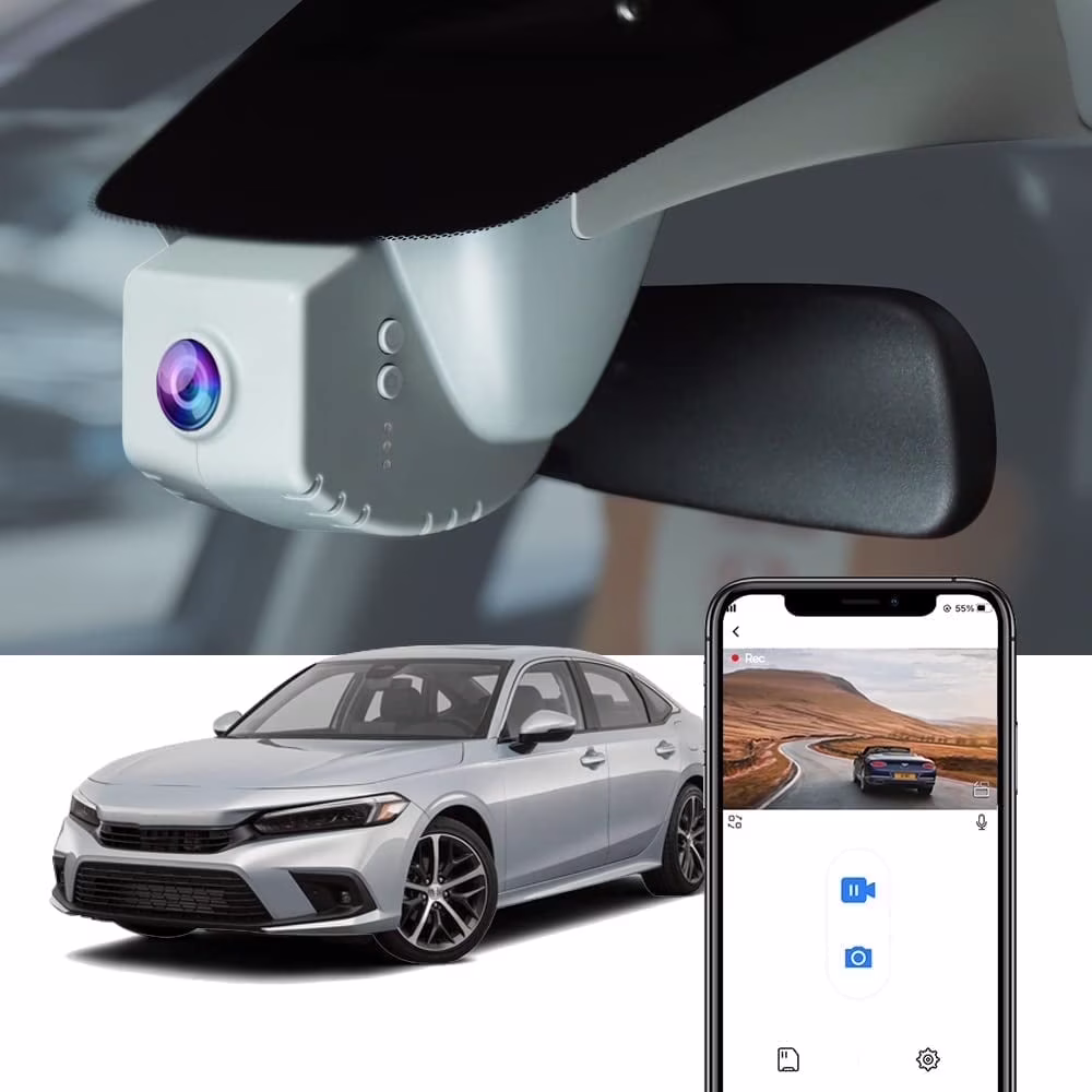 Fitcamx 4K Dash Cam Suitable for Honda Civic 2022 2023 2024 Type R Sport LX EX Touring, Black Color, OEM Factory Look, WiFi Connect & APP, 64GB Card