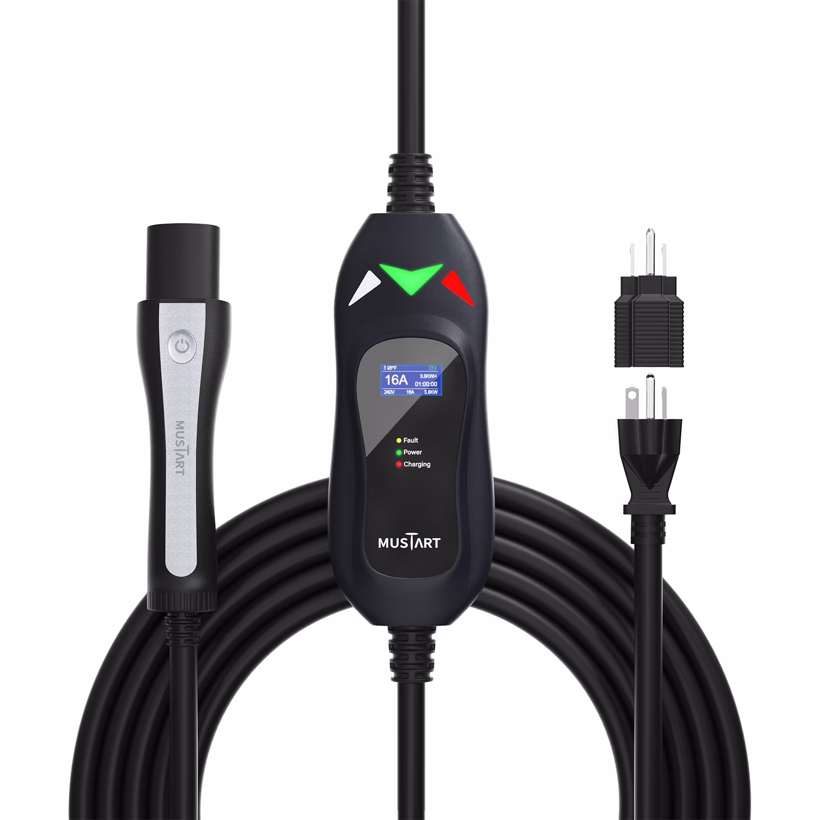 MUSTART Level 1-2 Tesla Charger - 110-240V, 16 Amp, NEMA 6-20 Plug with NEMA 5-15 Adapter - Portable Electric Car Charger for Tesla - Compatible with All Tesla Models X/Y/3/S