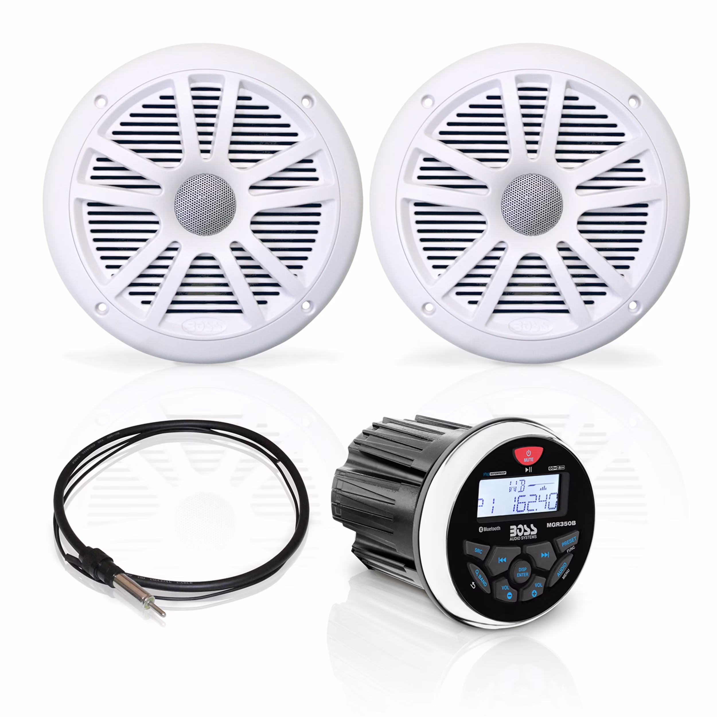 BOSS Audio Systems MCKGB350W.6 Gauge-Style Marine Bluetooth Receiver & Boat Speaker Package