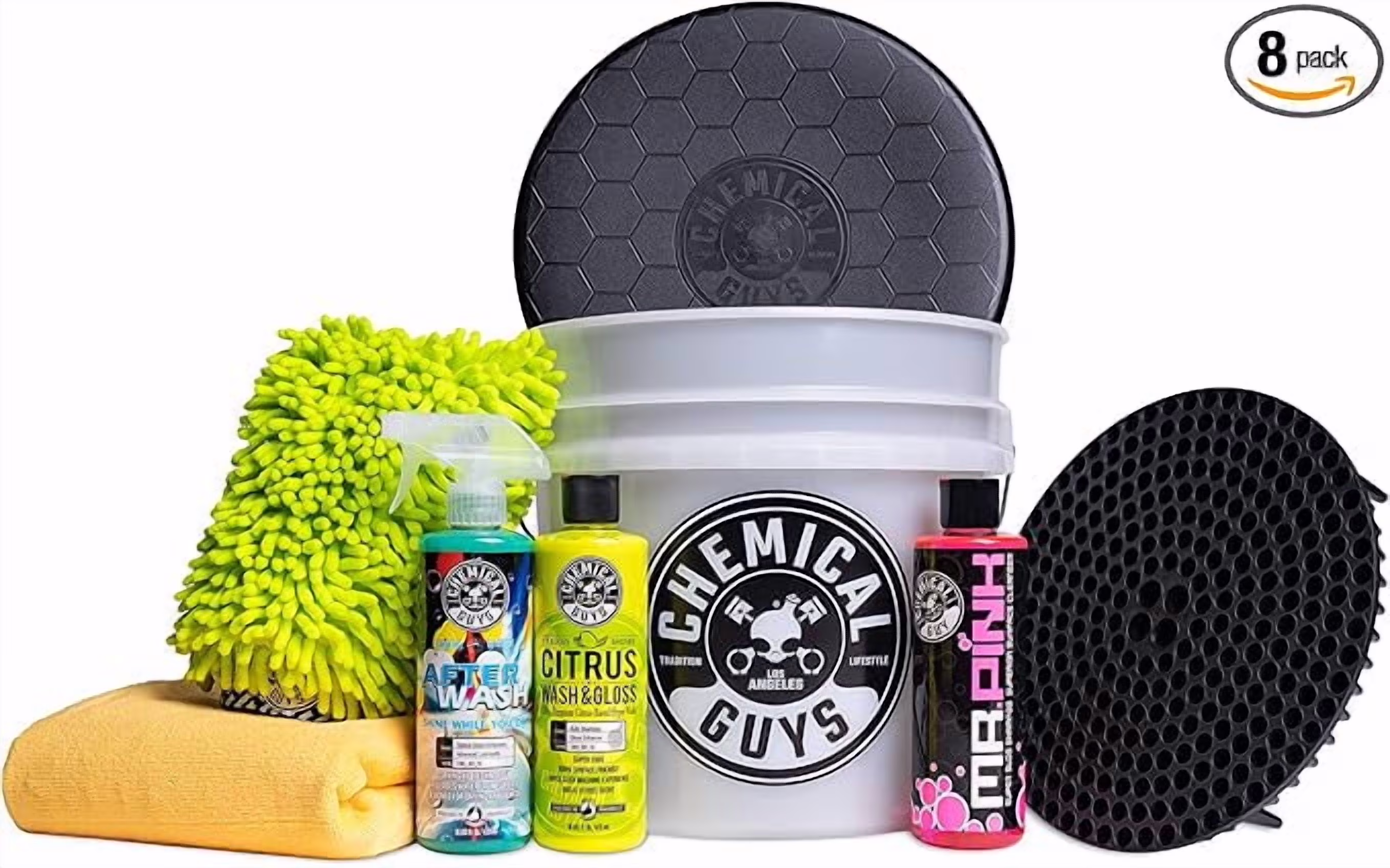 Chemical Guys HOL_128 Car Cleaning Kit, with Car Wash Soap, Car Wash Bucket and 16oz Car Care Cleaning (8 items)