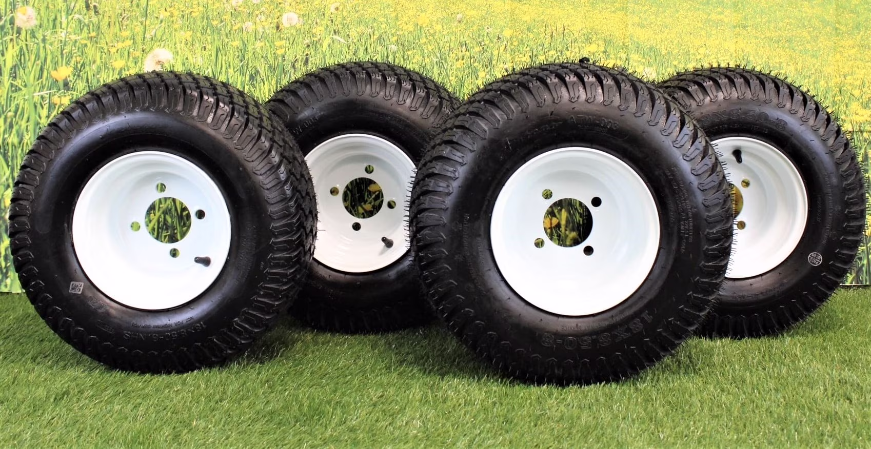 Antego Tire and Wheel 8" WHITE STEEL GOLF CART WHEELS AND 18X8.50-8" 4 PLY TURF TIRES ATW-003- (SET OF 4)