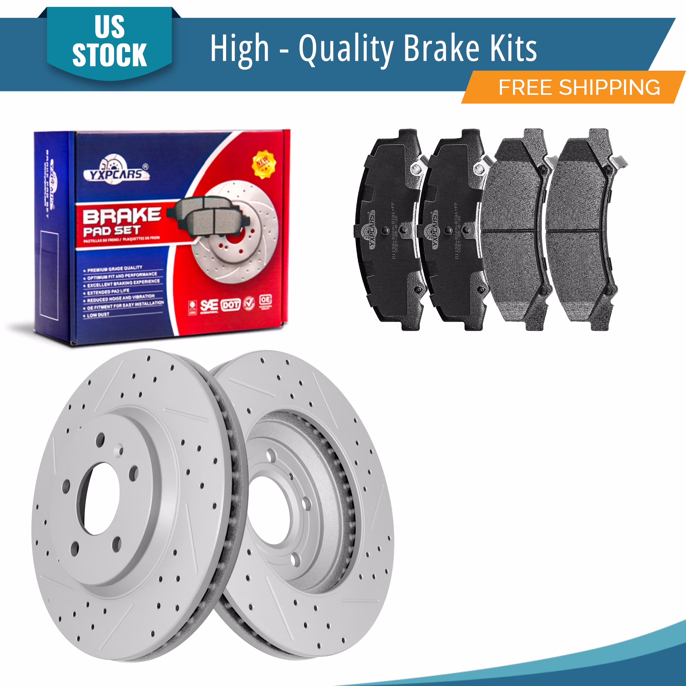 YXPCARS 6PCS Front Brake Kits, Drilled & Slotted Brake Rotors (120.62098) + Ceramic Brake Pads Kit for Chevrolet Impala Monte Carlo Impala Limited Buick Lucerne (55126+1159)
