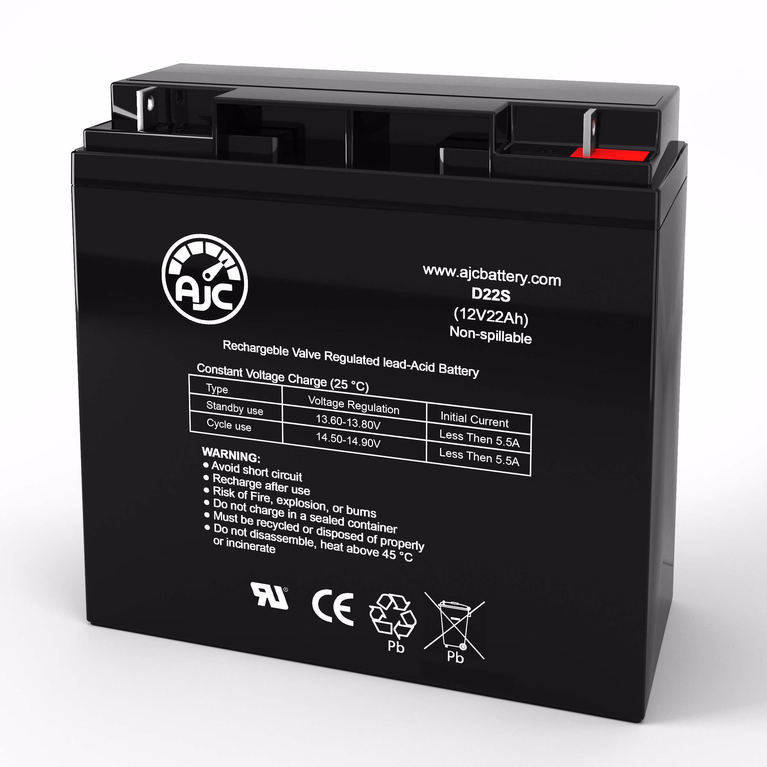 TaoTao ATE-502M 12V 22Ah Electric Scooter Battery - This Is an AJC Brand Replacement