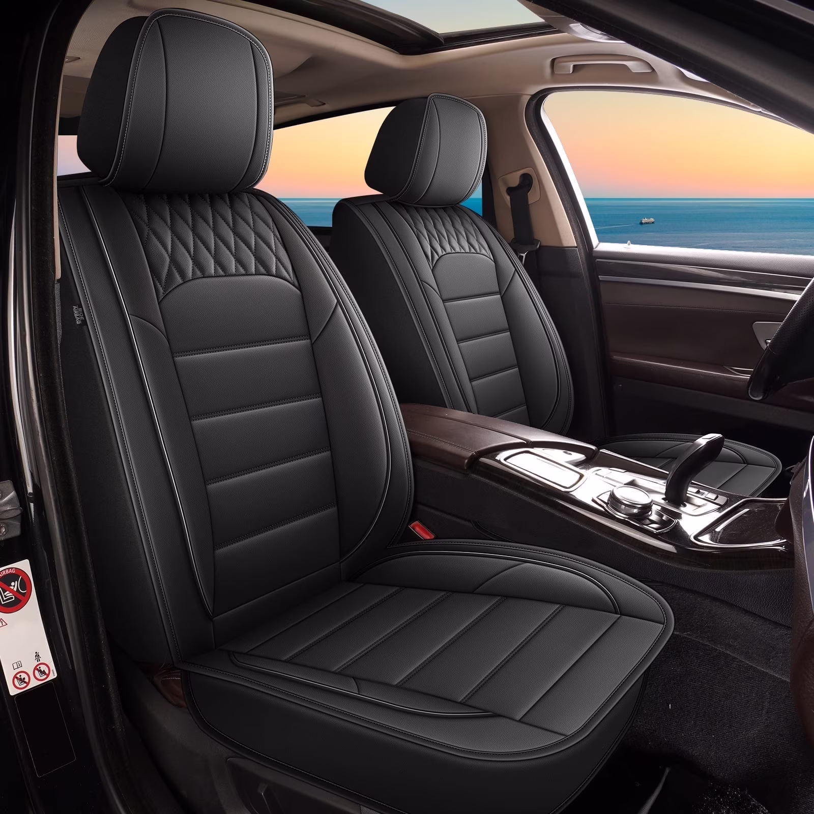 DIKSOAKR 2 Front Car Seat Covers Fit for Jeep Gladiator 2020-2024 2025 Faux Leather Automotive Seat Covers Waterproof Car Seat Cushion Protector Compatible with Airbag(2 Seats, Black)