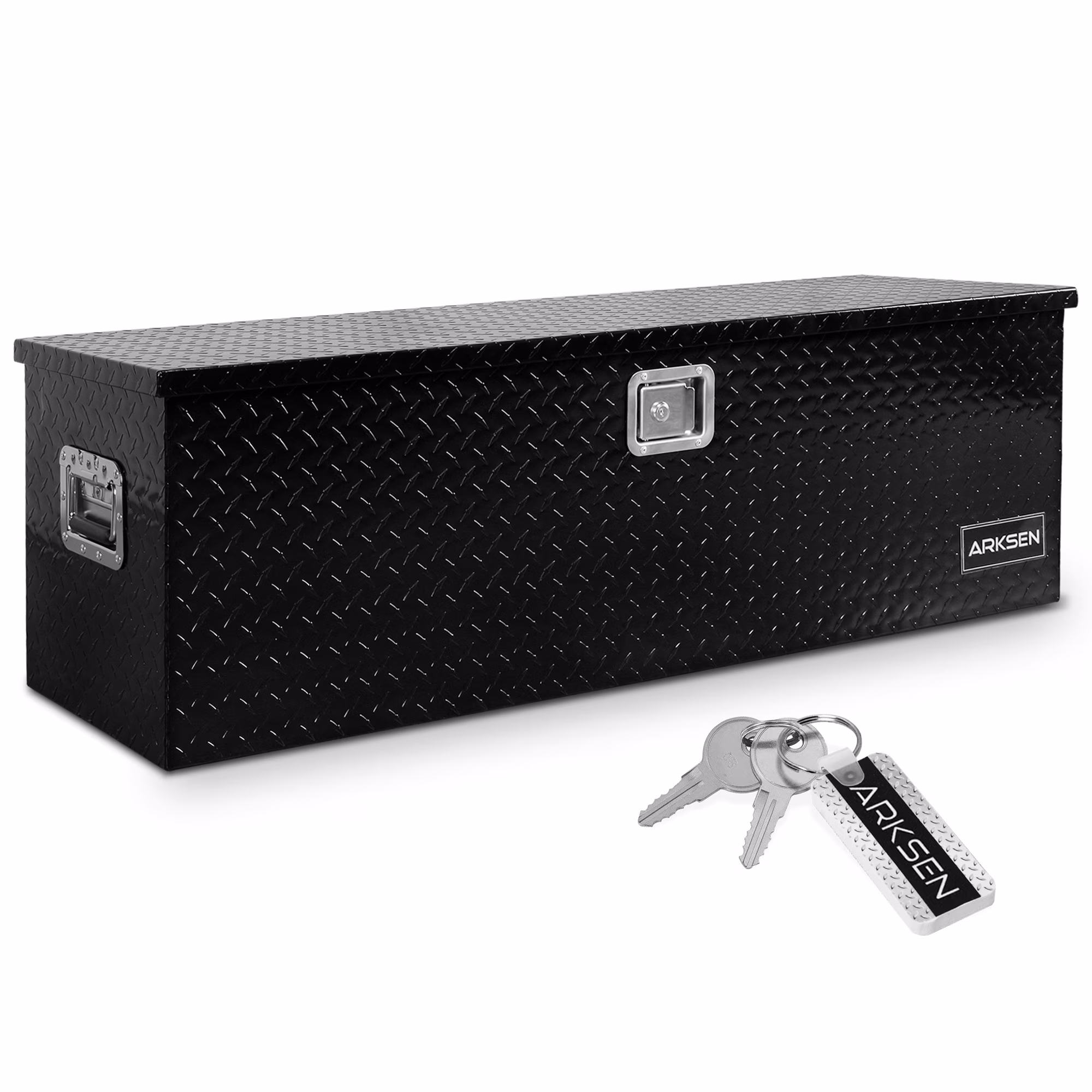 ARKSEN 49 Inch Aluminum Utility Tool Box Diamond Plate Chest Box Truck Bed Trailer Storage Organizer, Black