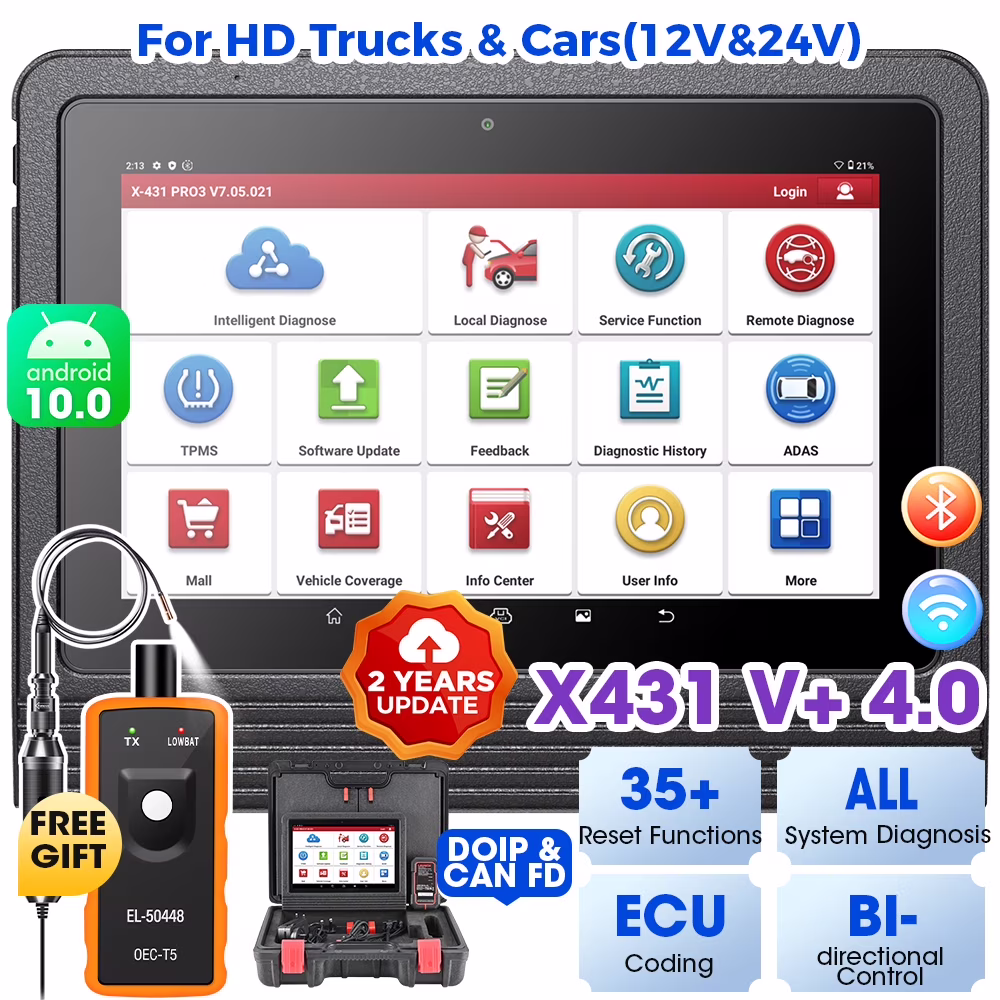 LAUNCH X431 V+ 4.0 24V Commercial Vehicle Heavy Duty Truck Car Diagnostic Scan Tool With Free MV108S&TPMS, 35+ Reset,All System Scanner,Free Update