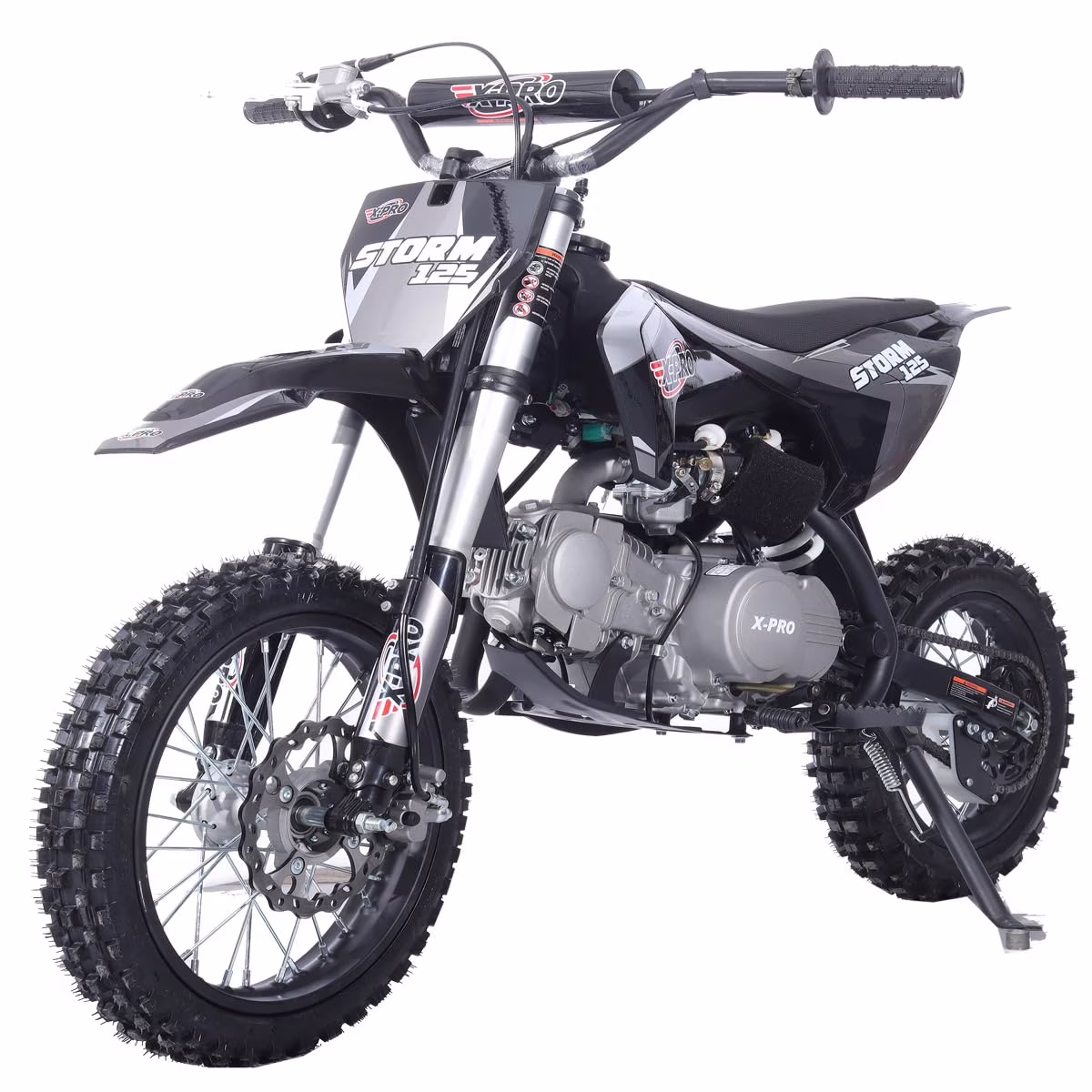X-Pro Brand New Storm 125cc Dirt Bike with 4-Speed Semi-Auto Transmission, Kick Start, Big 14"/12" Tires!