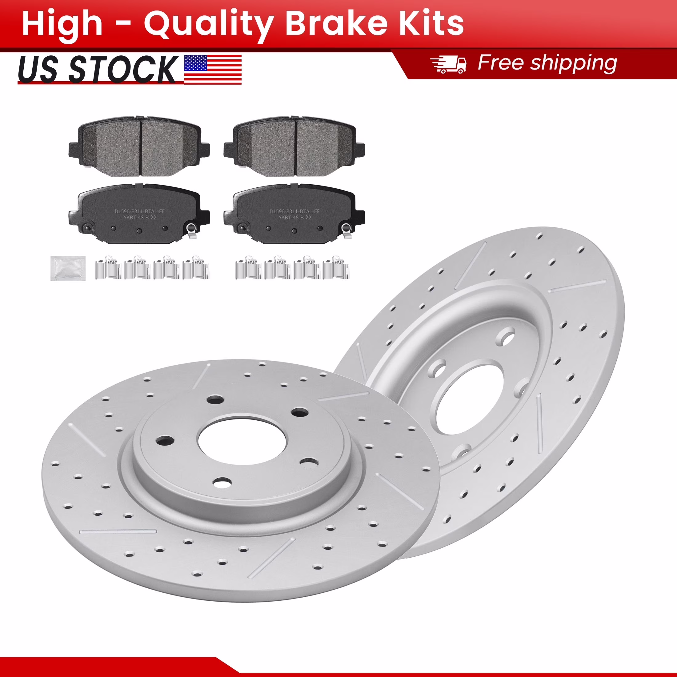 ACB ZONE Rear Brake Kits for Chrysler Town & Country Dodge Grand Caravan Journey Ram C/V Volkswagen Routan, Drilled Slotted Disc Brake Rotors and Ceramic Brake Pads
