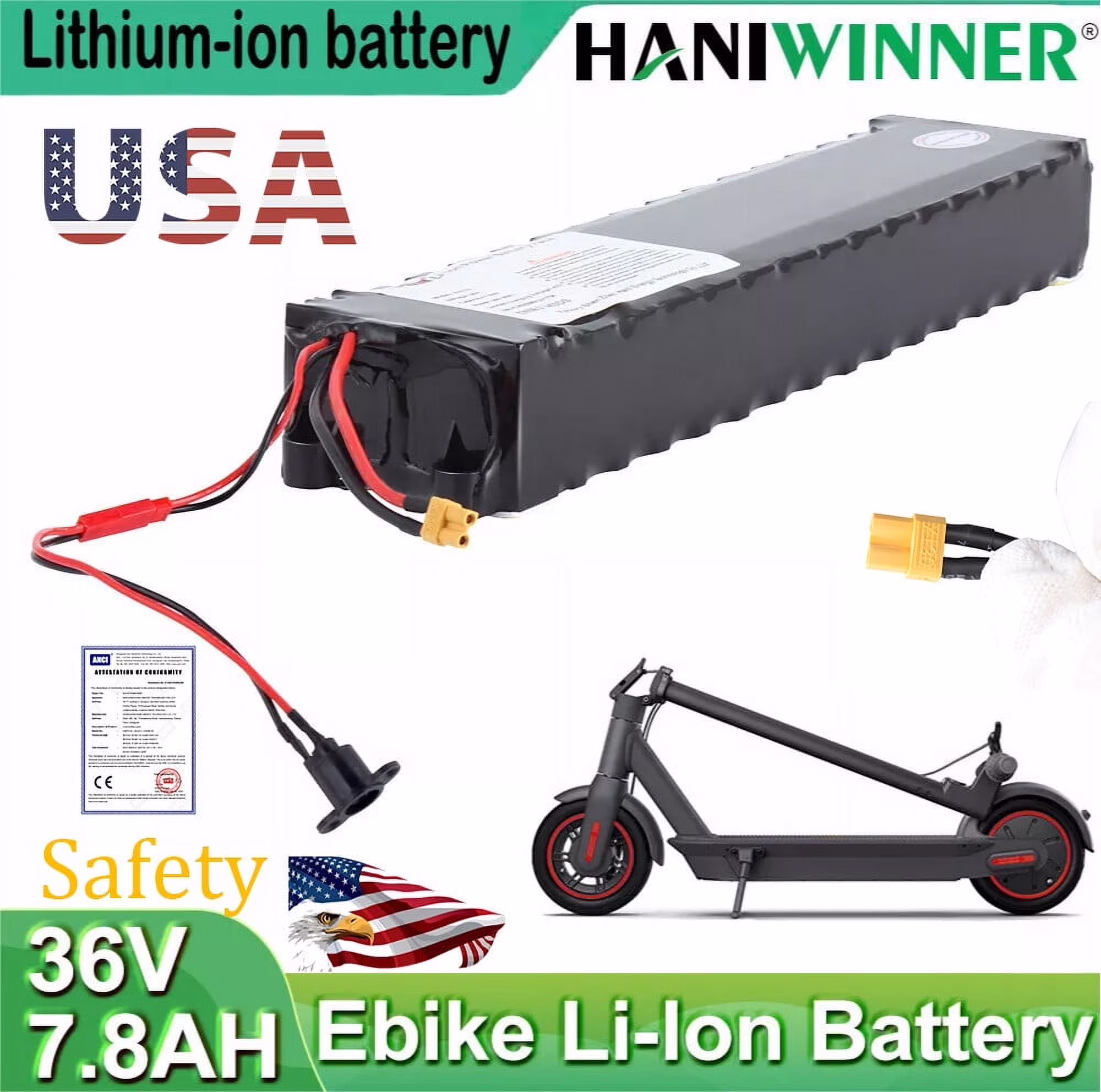 HANIWINNER 36V 7.8ah Battery Pack for Electric Scooter Replacement Battery US