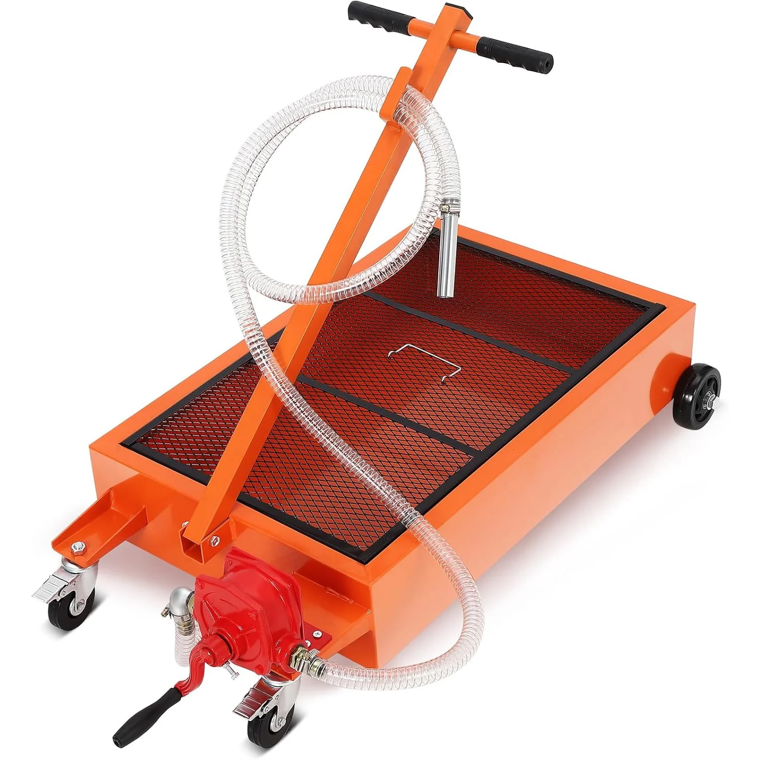 AOILE Low-Profile Oil Drain Pan with Manual Pump, 15/20 Gallon Rolling Oil Drain Tank with Hose & Folding Handle for Cars, Trucks, and SUVs