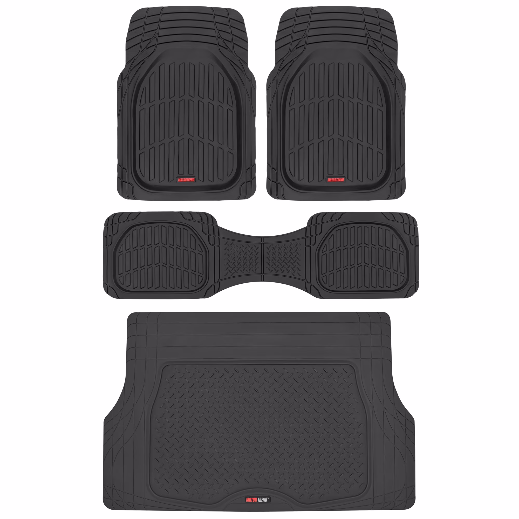 Motor Trend Original FlexTough Black Rubber Car Floor Mats with Trunk Cargo Liner - All Weather Automotive Floor Mats, Heavy Duty Trim to Fit Design, Floor Liners for Cars Truck Van SUV