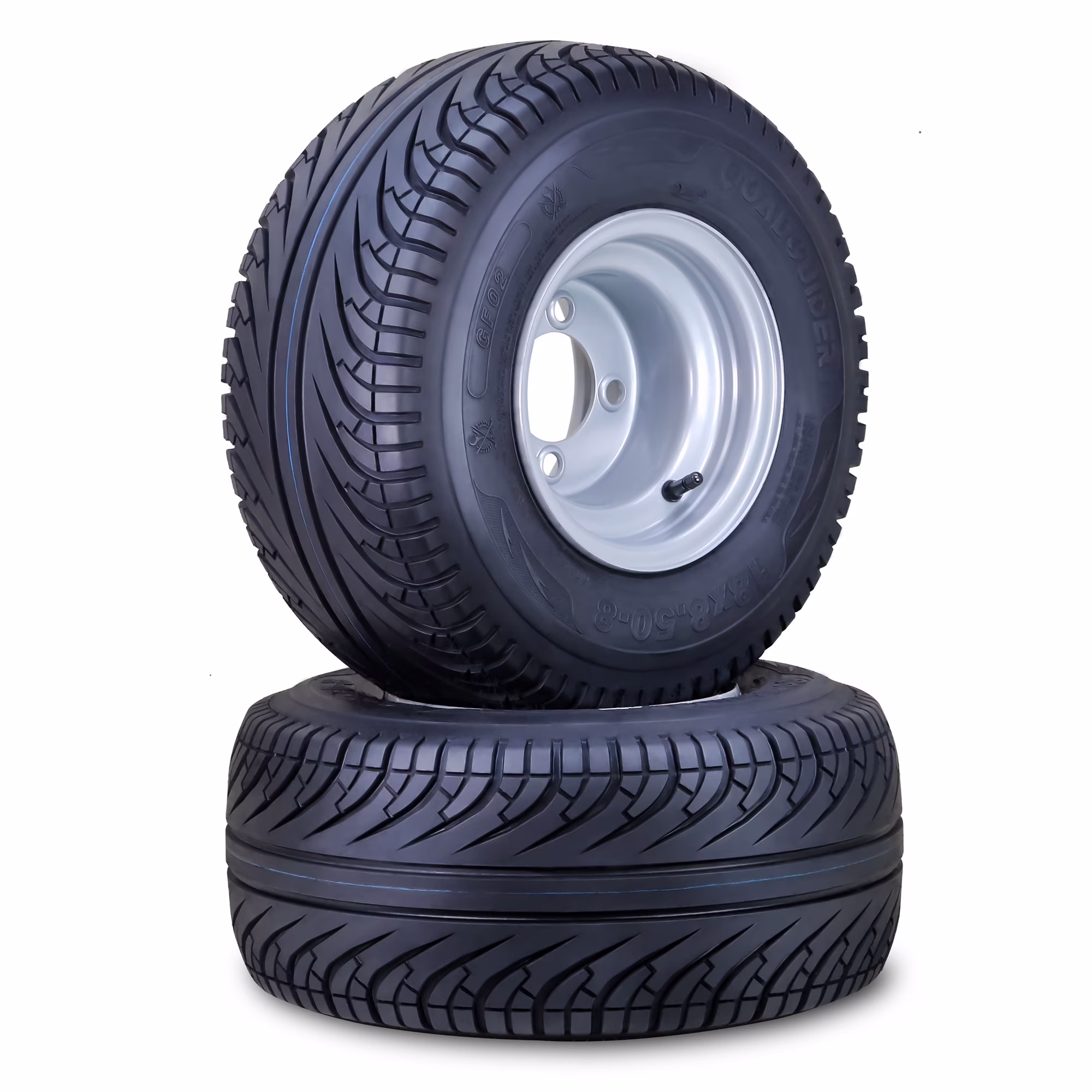 ROADGUIDER Golf Cart Tire Wheel Assembly 18X8.5-8 4-Ply with 4 Lugs on 4" PCD Silver Rim ,SET 2 -14039