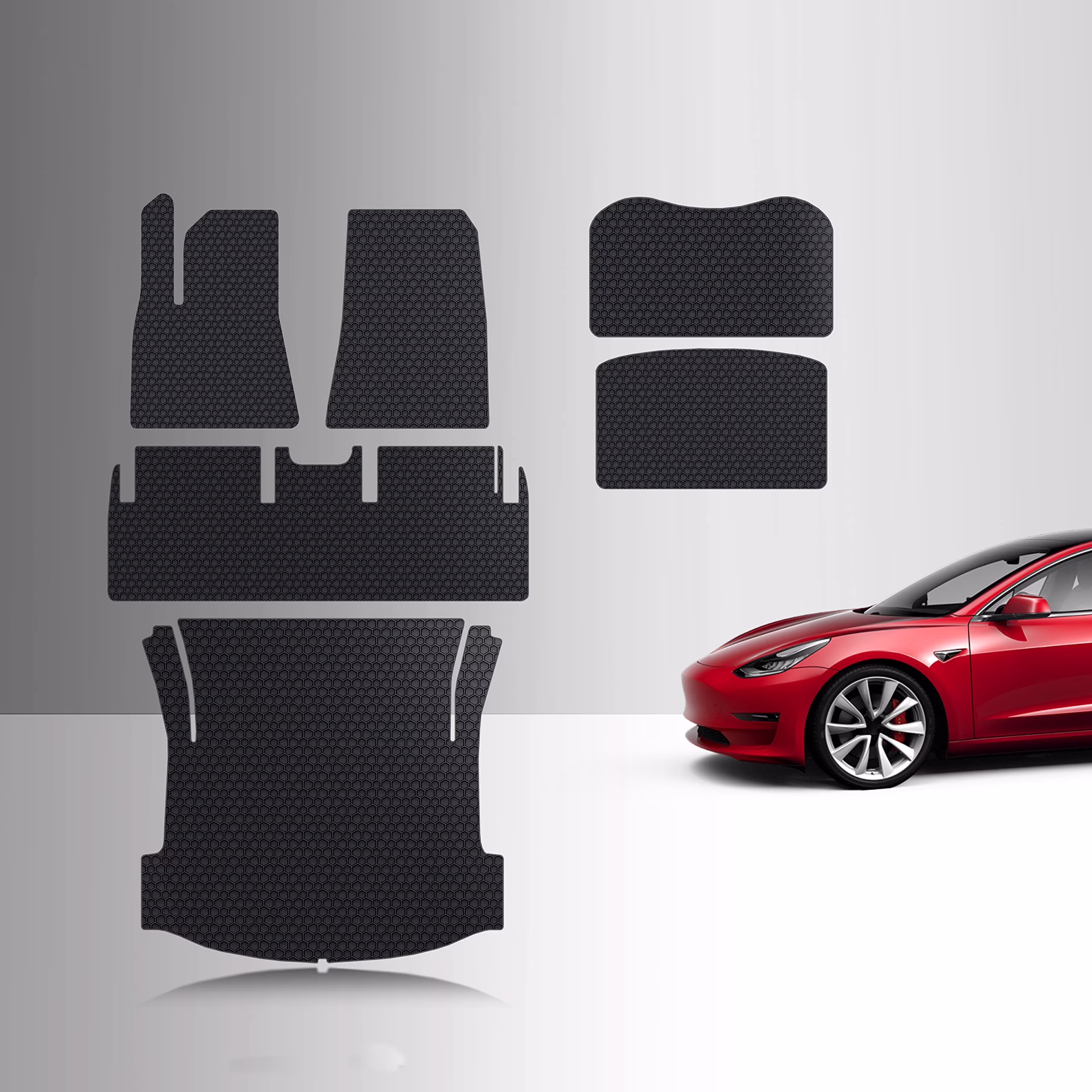 ToughPRO Floor Mats (Complete Set) Compatible with Tesla Model 3 2021 Long Range/Performance - All Weather Heavy Duty (Made in USA) Black Rubber