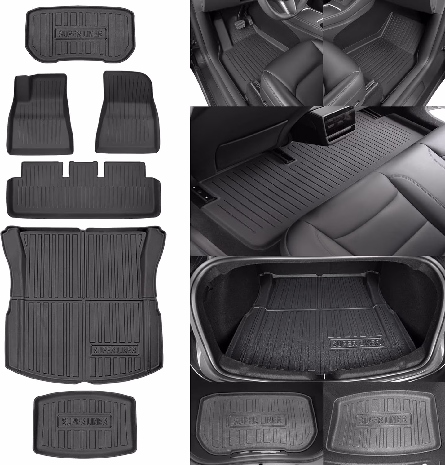 Tesla Model 3 Floor Mats 2024 2025 All-Weather Floor Mats Set (6 Pieces) | Custom Fit, Pet & Child-Friendly | Model 3 Highland Cargo Liner Rear Cargo Tray Trunk Interior Accessories