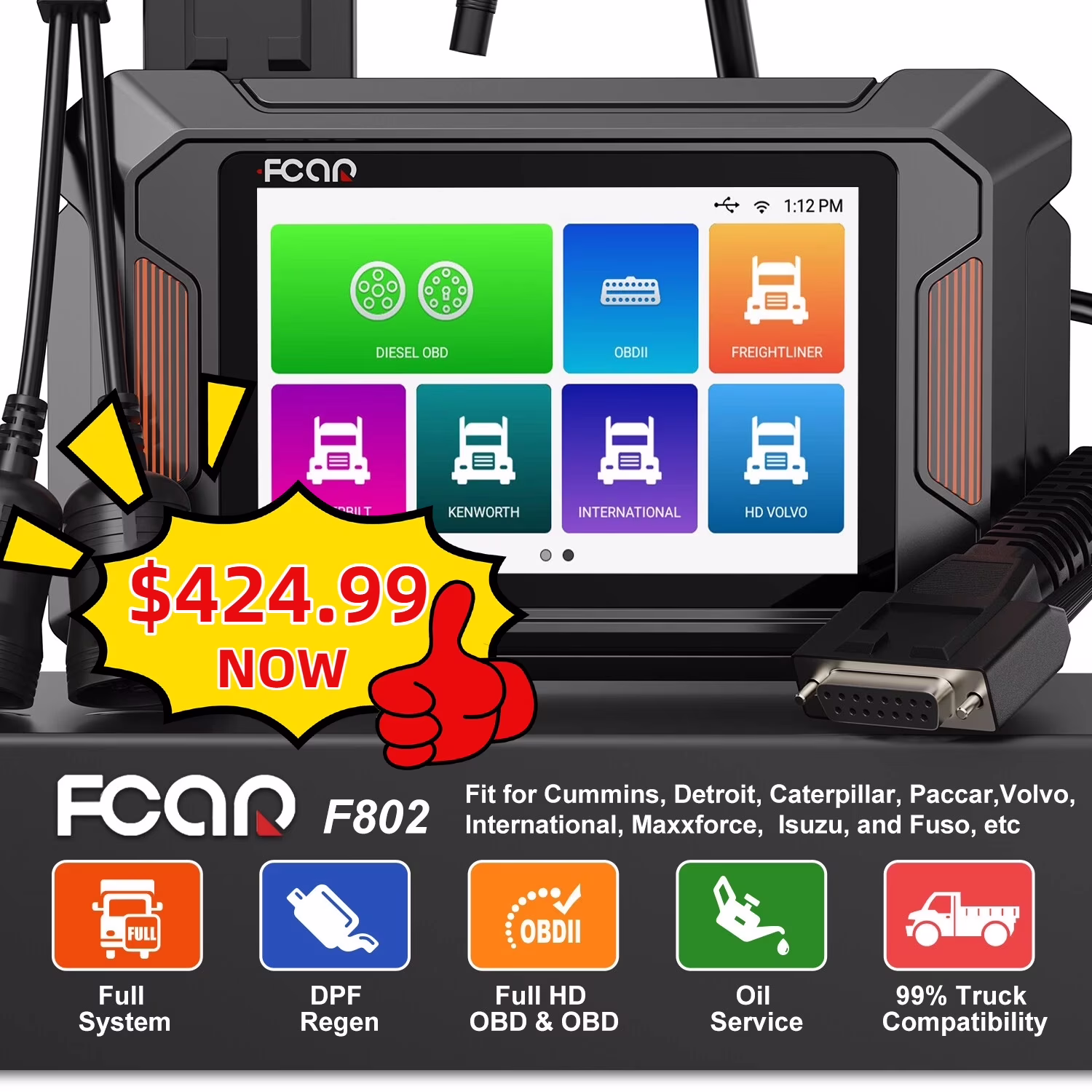 FCAR F802 PRO Diesel Truck Diagnostic Scanner 24V HD OBD Scan All System DPF Regeneration Oil Service Reset Truck Engine Scanner OBD2 Scanner Car & Truck Code Reader Diesel Heavy Duty Truck Scan Tool