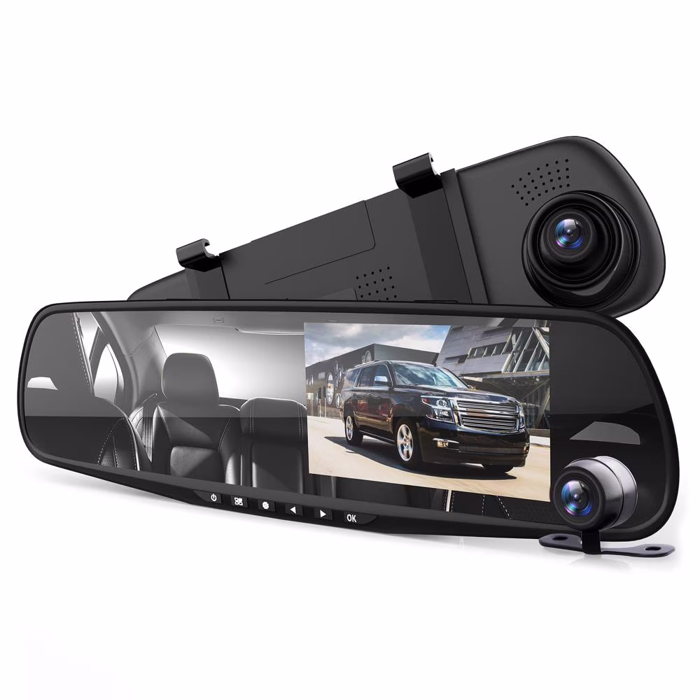 Pyle Dash Cam Rearview Mirror - 4.3�� DVR Monitor Rear View Dual Camera Video Recording System