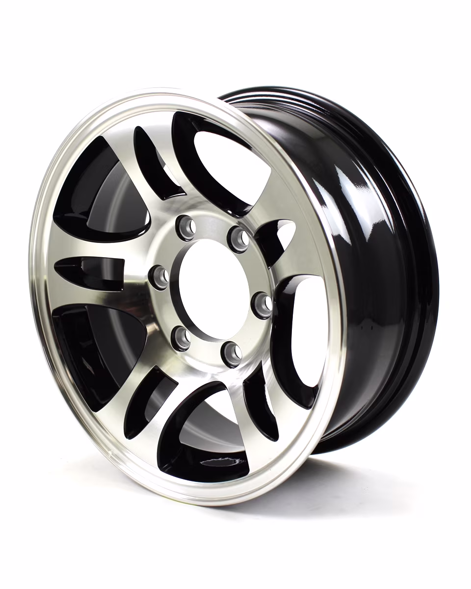 15x6 6-Lug on 5.5" Aluminum T03 Trailer Wheel Black Inlay - T03-56655BM
