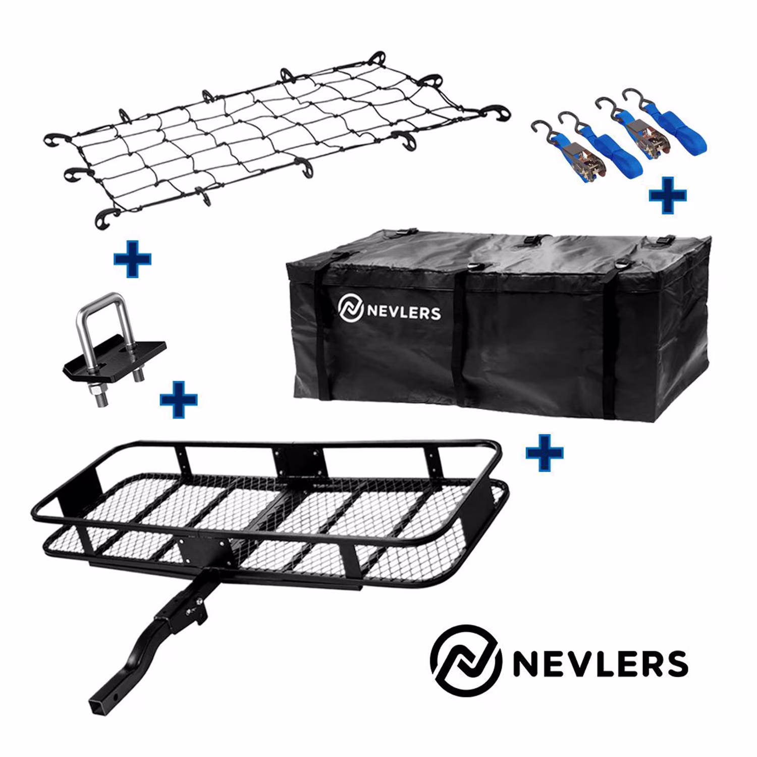 Nevlers Folding Hitch Mount Cargo Carrier w/ Bag, Net, Straps, & Stabilizer