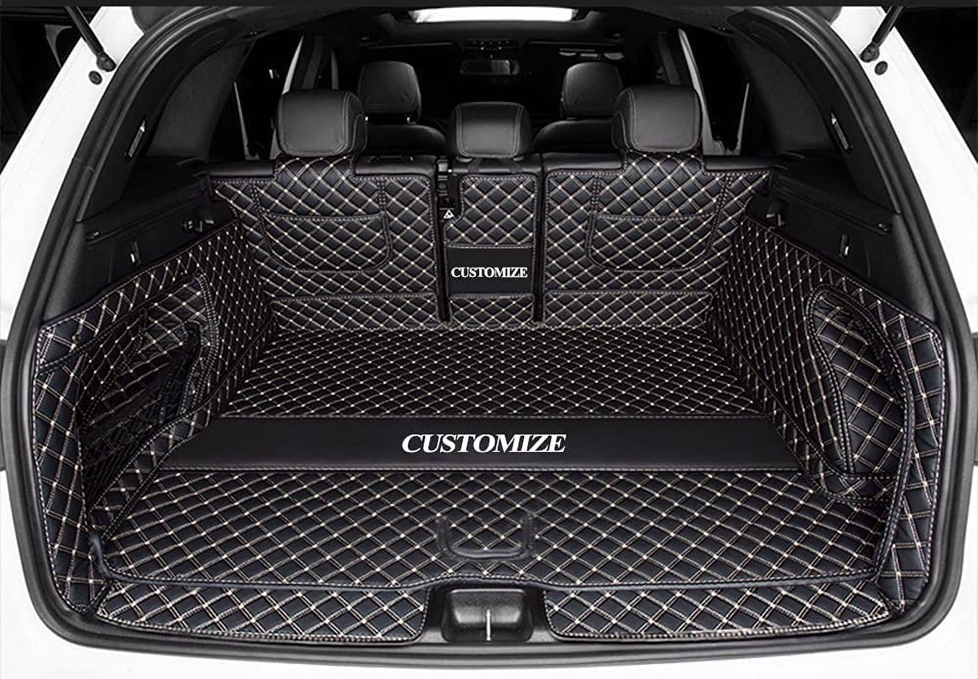 Cargo Liner Trunk Mat Compatible with Mercedes GLE SUV GLE350 GLE450 GLE300 GLE250 GLE260 2015-2019 3D Laser Full Coverage Protection Trunk Liner Black with Gold Stitching