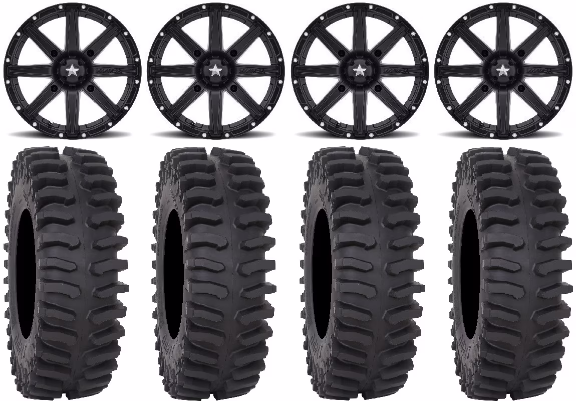 MSA Black Clutch 15" UTV Wheels 32" XT400 Tires Can-Am Maverick X3 / Honda Pioneer 1000 / Talon