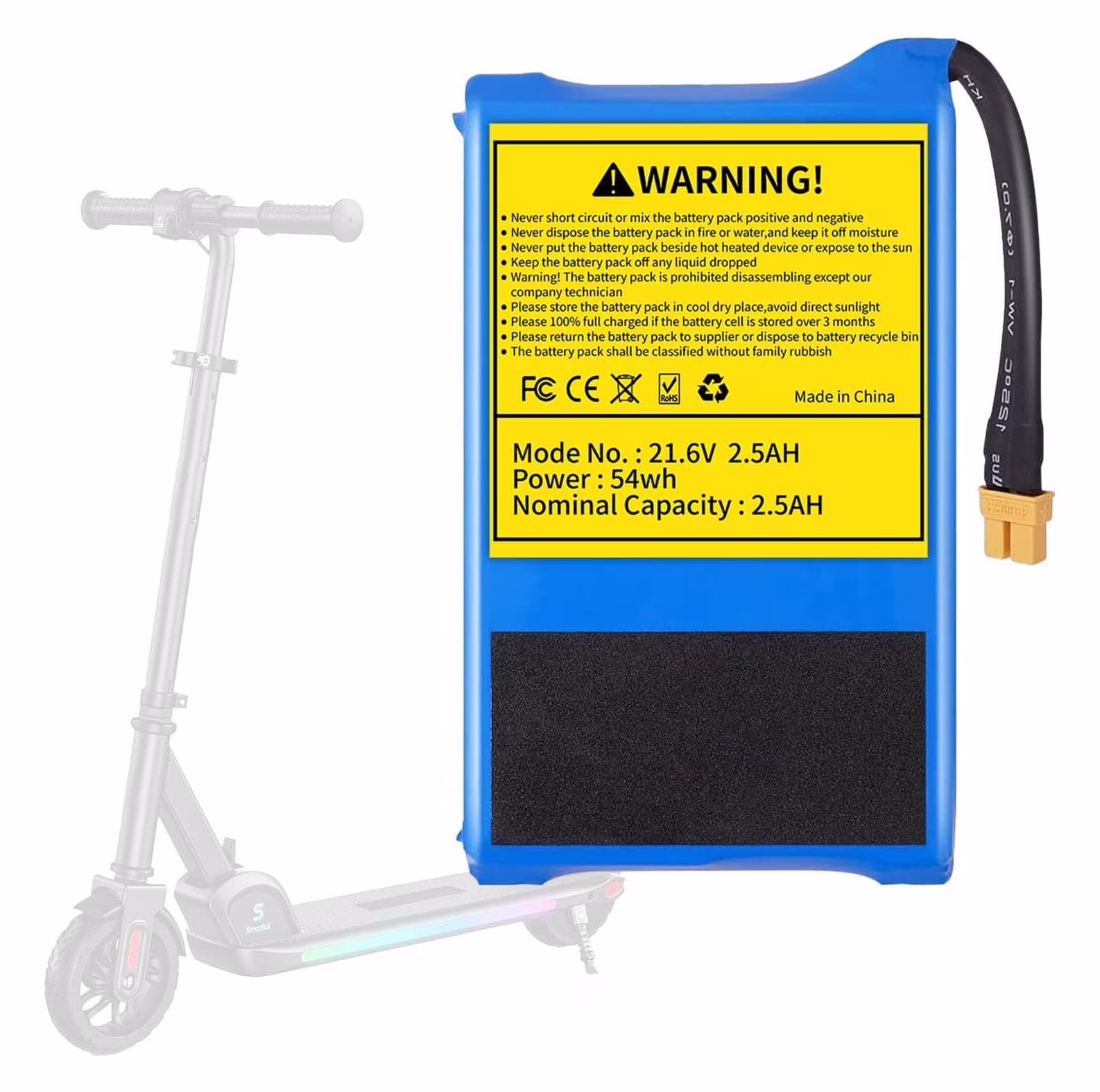 21.6V 2.5Ah Electric Scooter Battery Replacement Compatible with SmooSat / Pro / Electric Kids Scooter, High Capacity Electric Scooter Battery Rechargeable Li-ion Battery Pack