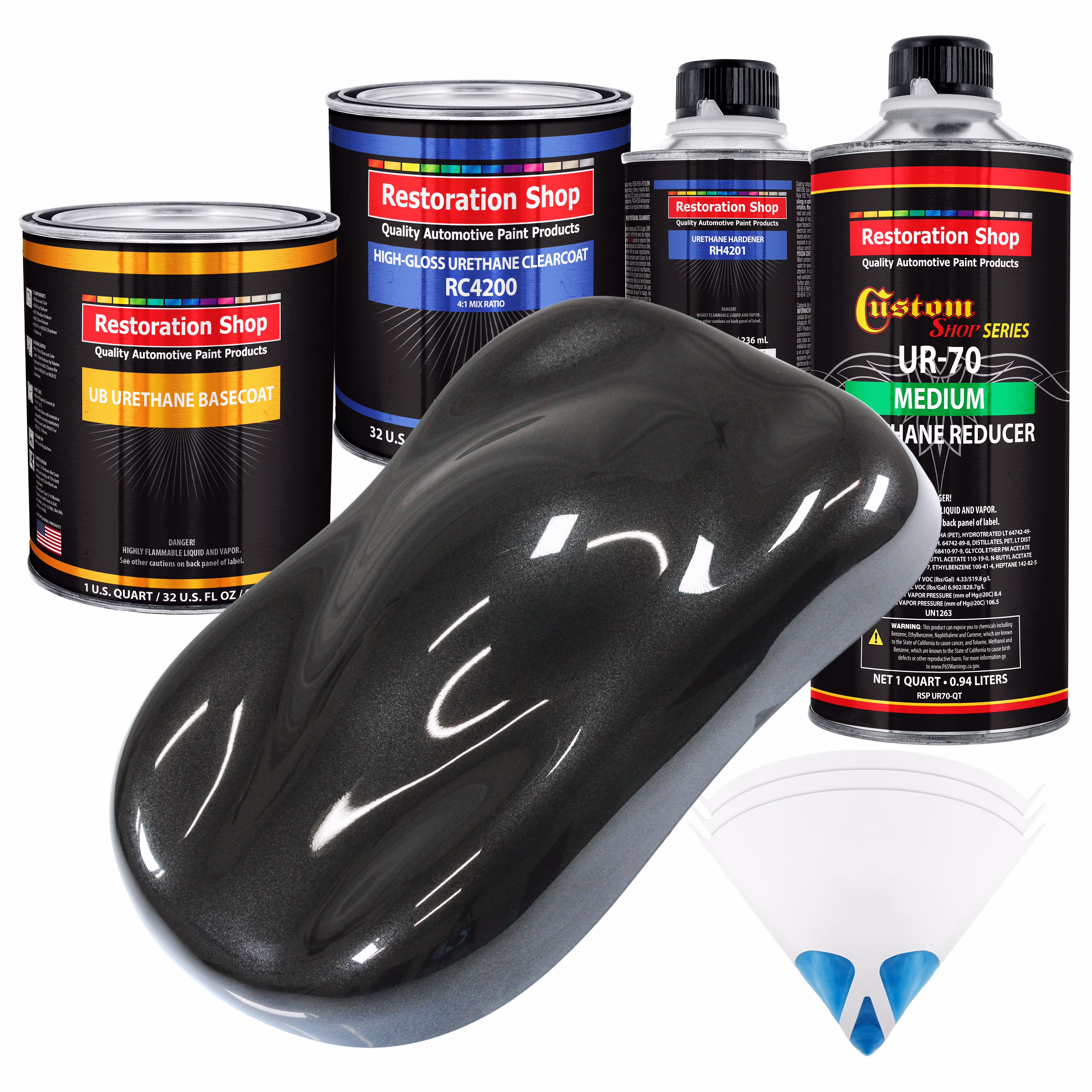 Black Metallic Quart URETHANE BASECOAT CLEARCOAT Car Auto Body Paint Kit