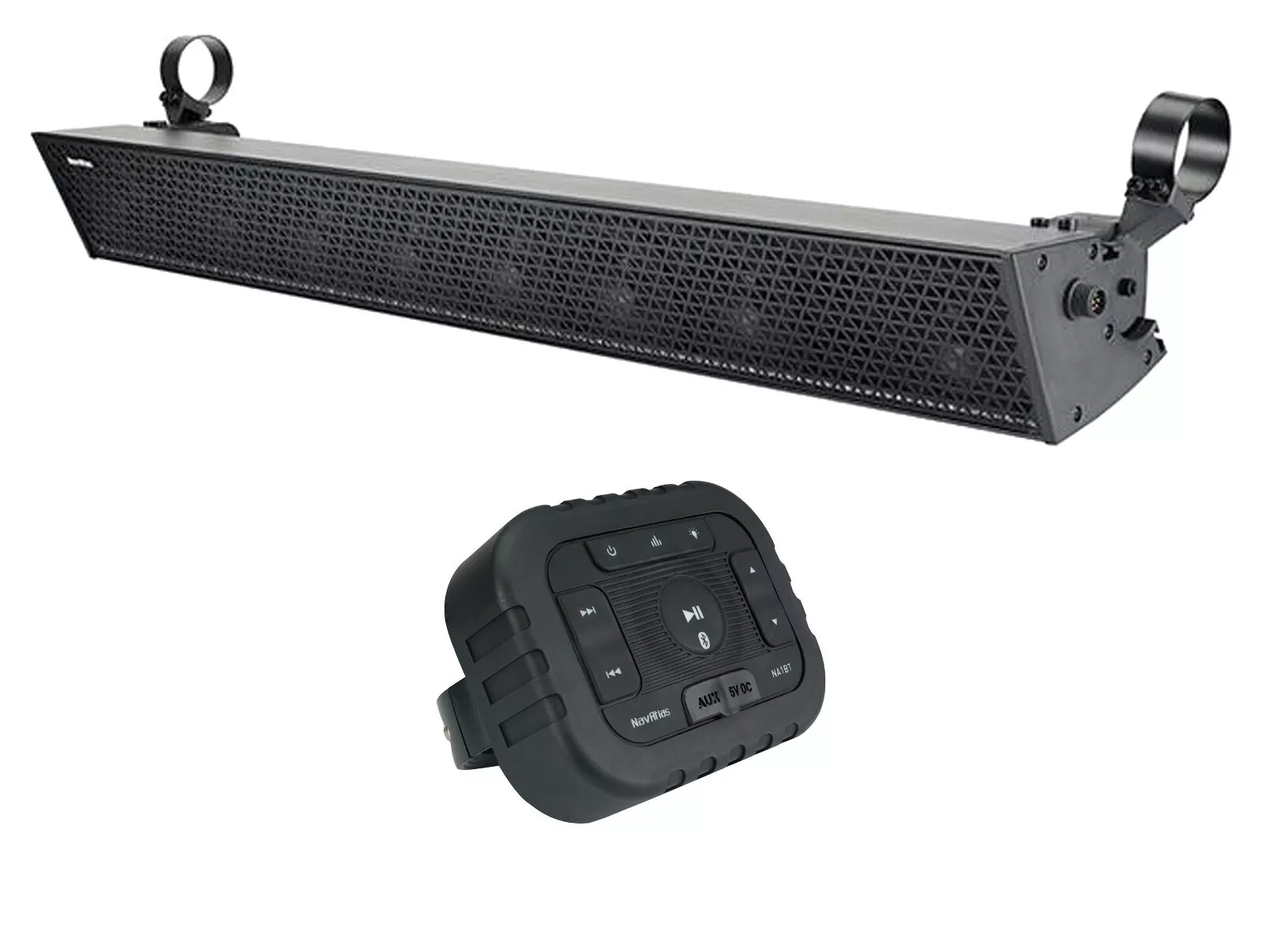 NavAtlas NS35A Amplified 35" Soundbar with NA1BT Cage Mount Bluetooth Controller for ATV/UTV, Golf Carts and Marine - New