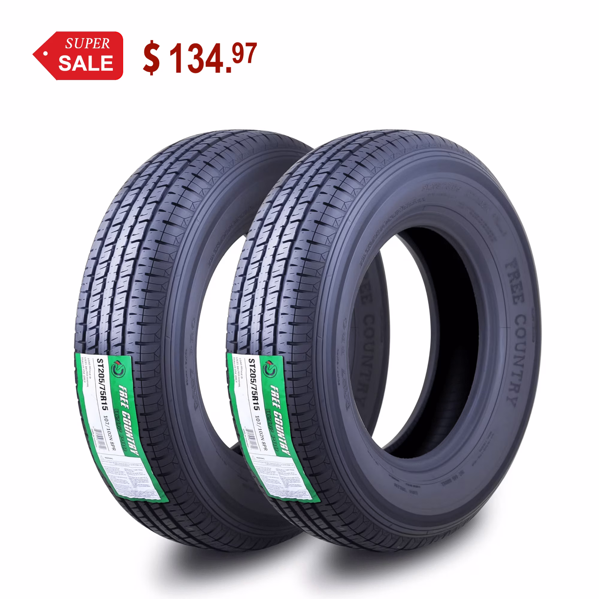 Free Country ST 205/75R15 8 Ply /Load Range D w/Scuff Guard Trailer Tires, Set of 2