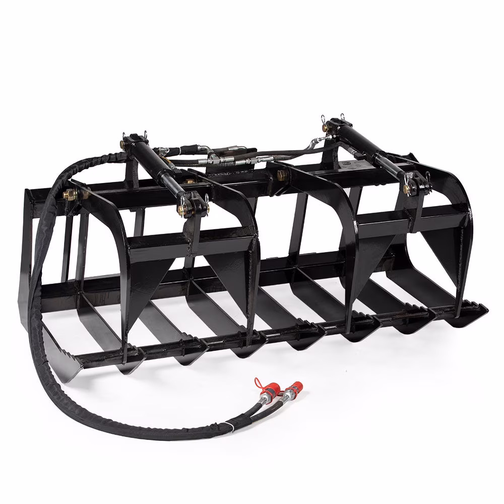 Titan Attachments 60in Economy Skid Steer Root Grapple Bucket Attachment, 3/8in Thick Steel Frame, Quick Tach Mounting System