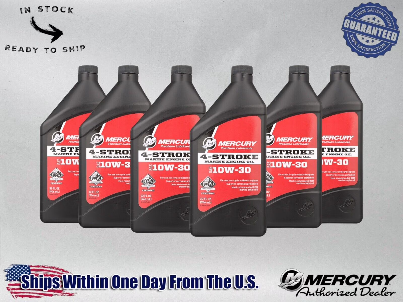 Mercury OEM SAE 10W-30 Mineral 4-Stroke Marine Engine Oil Quart 8M0078625-6PACK