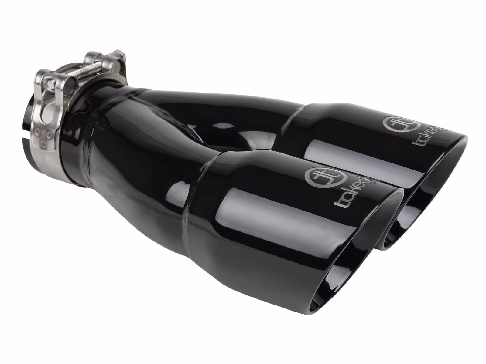 aFe Takeda 2.5-inch 304 Stainless Steel Clamp-On Exhaust Tip with Dual Outlets and Black Finish