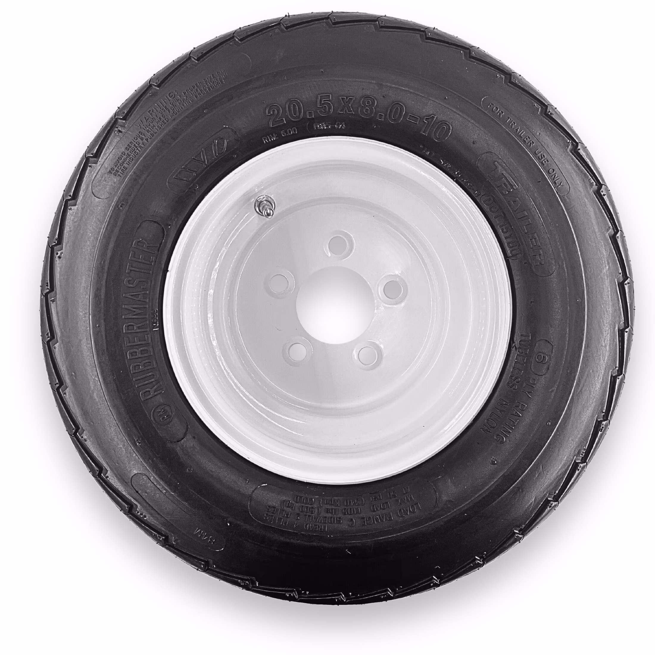 RubberMaster 20.5x8.0-10 (205/65D10) 6 Ply Highway Rib Tire and 4 on 4 Stamped
