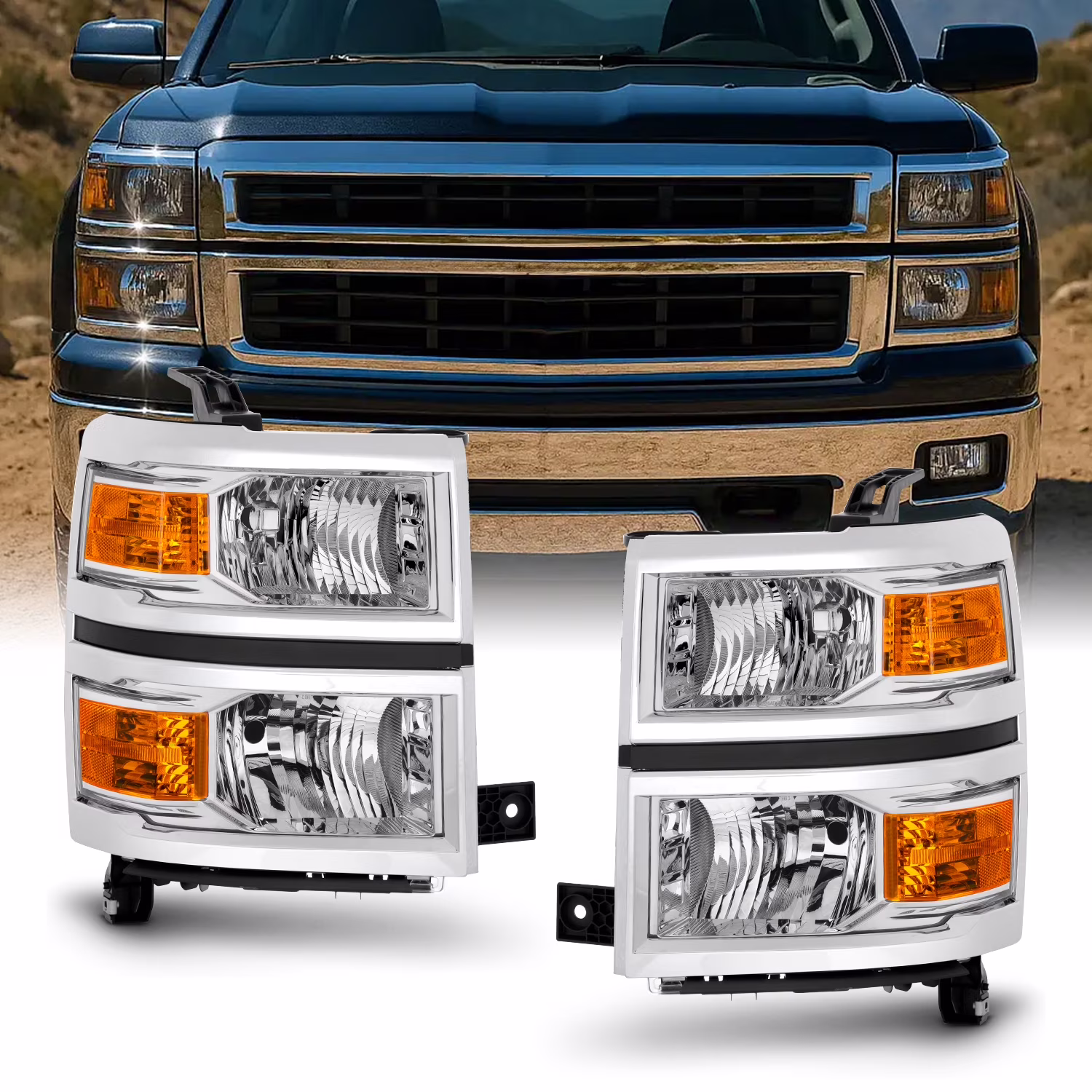 AKKON - For 2014 2015 Chevy Silverado 1500 Pickup Truck Chrome Clear Headlight Lamp Assembly Driver + Passenger Side