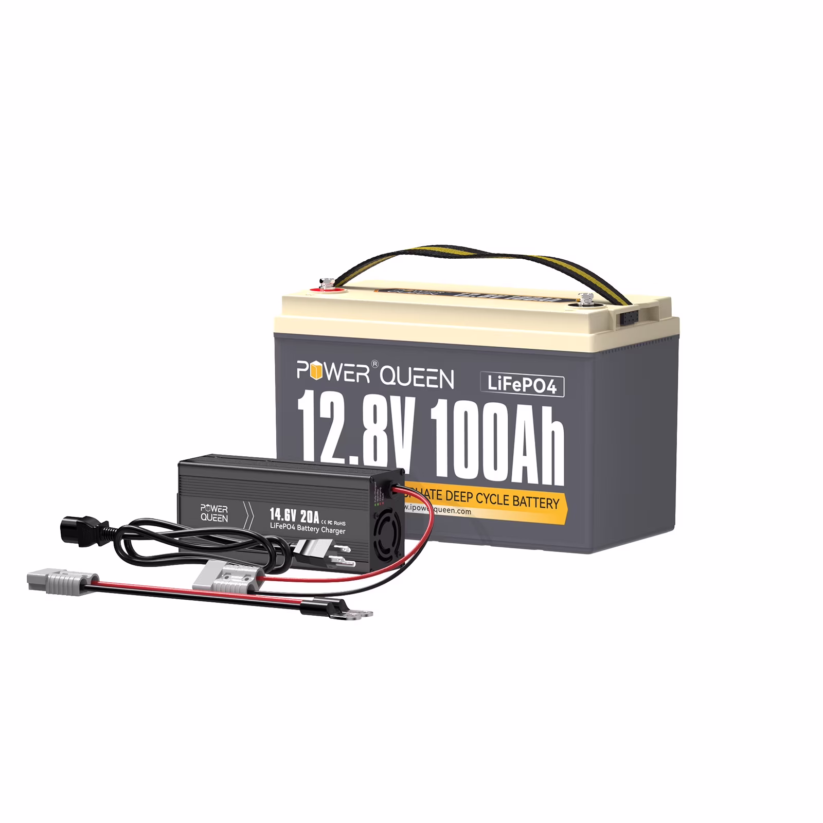 Power Queen LiFePO4 12V 100Ah Lithium Battery Deep Cycle 1280Wh with 14.6V 20A Charger