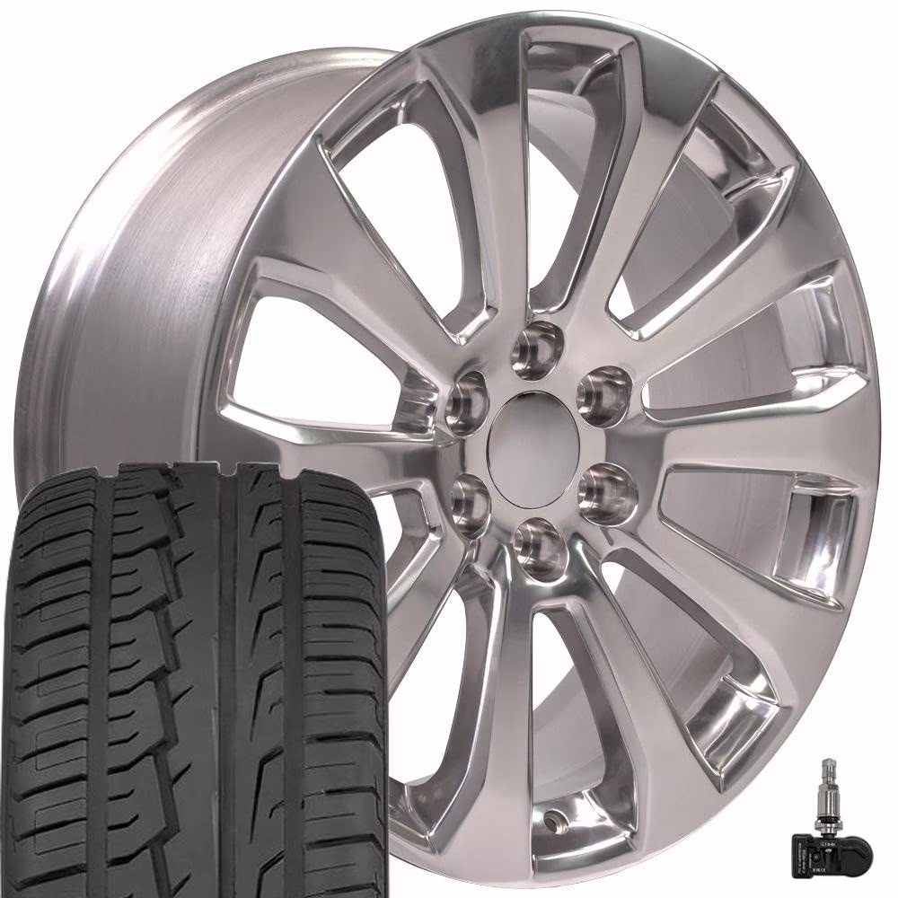 22 inch Polished 5922 OE Wheels, Tires & TPMS Set Fits GM Trucks High Country Rims